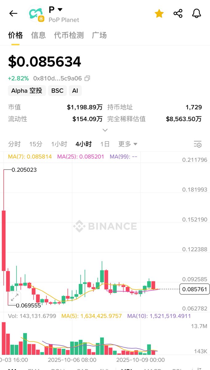 刷着刷着,看到了之前就有在关注的项目 PoP Planet $P @Hi_PoPPOfficial,它也是在BSC链,而且有上币安阿尔法!
