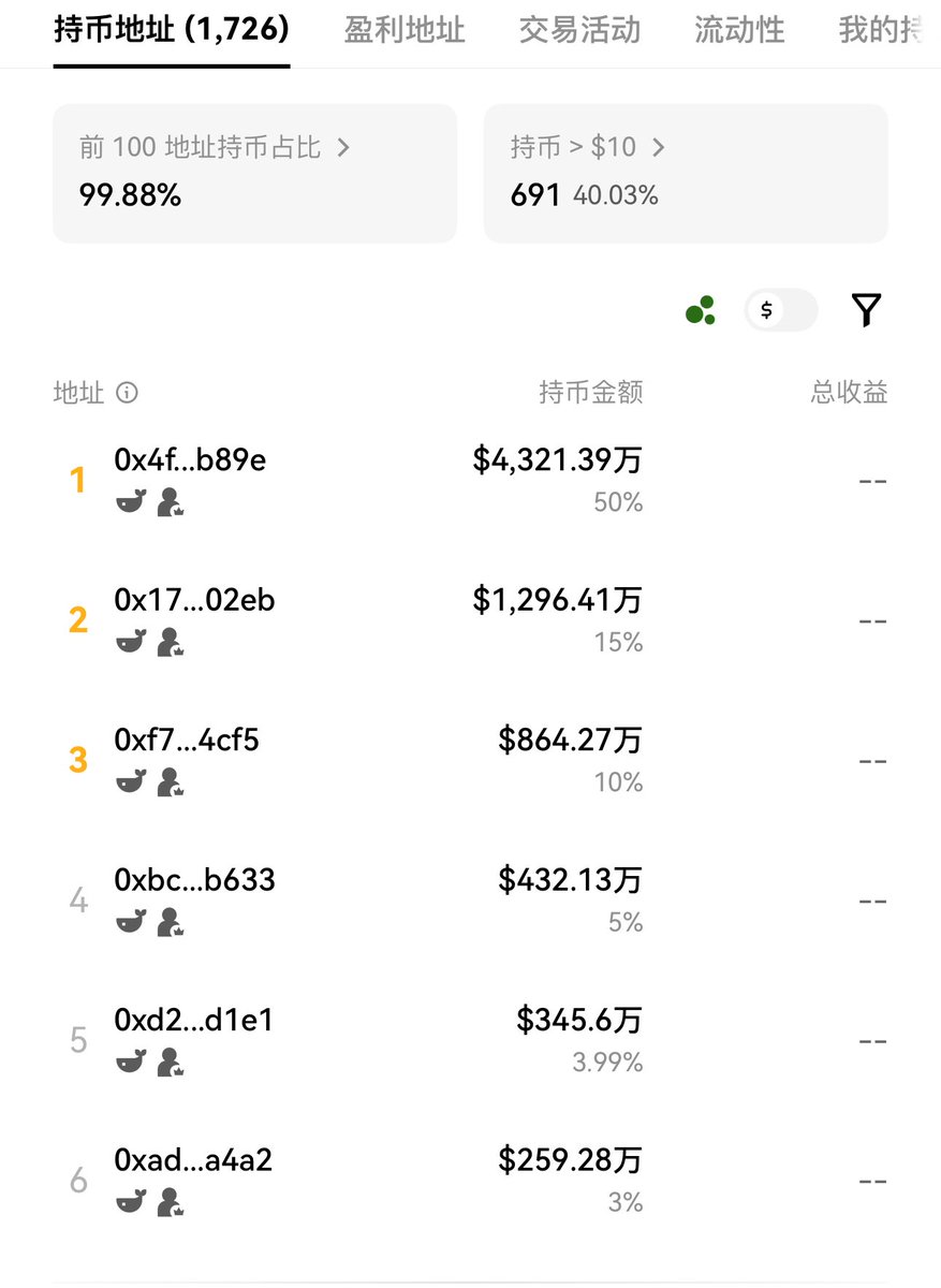 已知:项目融资1000w,初始流通14%,查看持币地址前十控筹95%。