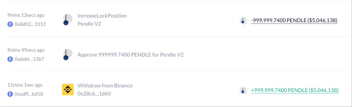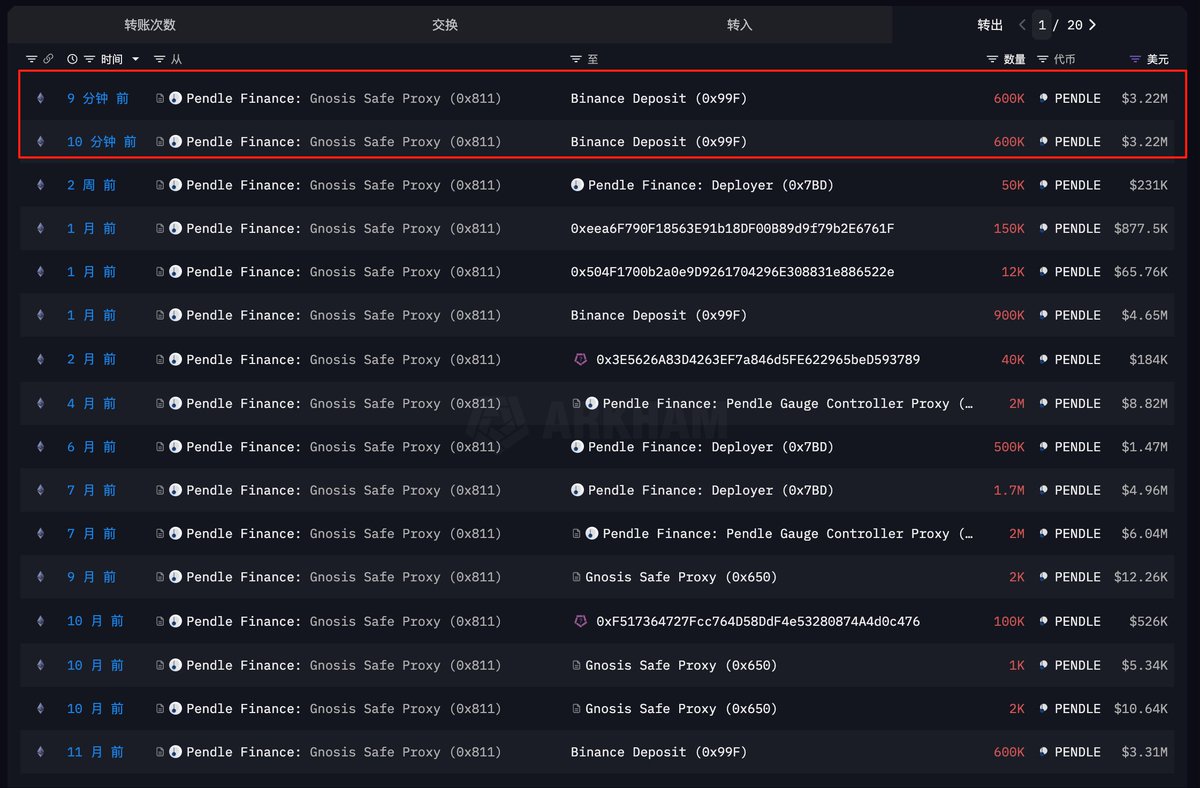 10 分钟前,Pendle 的多签钱包 (0x811) 再次把 120 万枚 PENDLE ($644 万) 转进币安。 本文由 #Bitget|@Bitget_zh 赞助