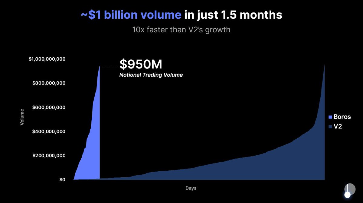 ⚡️Boros 自从一个月前上线以来,节奏走得非常快。 看官方昨天公布的数据,在短短的 soft launch 阶段,已经交出了一份漂亮的成绩单: 🔸累计名义交易量接近 9.5 亿美金 🔸未平仓合约规模突破 6000 万美金 🔸协议年化收入 73 万美金 🔸活跃用户超过 1.1 万 要知道,Pendle V2 当年达到同等规模,花了一年多的时间, 而 @boros_fi 仅仅只用了 一个半月! 这说明,市场对资金费率交易的需求是真实存在的。尤其是在上线了 Hyperliquid 交易对之后,套利玩法又变多了,资金增速明显更活跃了。 为了支撑更多人进场,Boros 也在不断调参:OI 上限翻倍、金库额度抬高、Hyperliquid 的杠杆从 1.3x 升到 2x。 换句话说就是,市场需求强到什么程度,Boros 就会顺势把容量和效率打开到什么程度! 如果把视野拉到整个市场,就更能理解 Boros 的潜力了—— 现在每天加密市场的 perp 市场规模,未平仓合约超过 2000 亿美金,日交易额高达 2500 亿美金,是现货的 10 倍。 而 Boros 目前只切到了这块蛋糕的 0.03%。哪怕未来市占率只是 3%,也意味着能拿到: 📍50 亿美金的 OI 📍7300 万美金的年化收入 这才是真正的「新金融原语」级别的机会! 而所有这一切,最终都会回流到 $PENDLE ——因为 Boros 不会单独发币,协议收入和价值积累,都会沉淀在 Pendle 体系里。 这也是为什么我常说,Pendle 还远没有走完它的故事。 从一个默默无闻的协议,到如今全球最大收益率交易平台,Pendle 已经完成了第一个阶段的价值发现: $PENDLE 从几毛涨到 5 美元以上。 但新的阶段才刚刚开始。 Boros 的成功,意味着 @pendle_fi 正式进入了第二次价值发现的周期——一个真正属于利率市场的价值发现周期。 很多人还没意识到这一点,但这恰恰是价值币成长最迷人的地方: 价格可能会滞后,但价值会不断累积。 当然,对很多新入场的朋友来说,更实际的问题是:到底该怎么用? 如果你还不知道从哪里开始,可以先看看我之前整理的几篇 Boros 教学合集,把基础逻辑和操作路径跑一遍,就会更直观地理解资金费率为什么能被交易、套利逻辑如何落地、你该怎么用Boros赚到钱: 👉《YT vs YU:一文看懂 Pendle 与 Boros 的资金策略!》https://t.co/SWCV15qtgJ 👉《Boros的收益如何计算?》https://t.co/U6I18OQstr 👉《BTC/ETH持币者怎么用Boros做理财?》https://t.co/wnjGQlDaPE 👉《Pendle Boros实操指南》https://t.co/xhckBznWo5 另外,Boros 现在也开放了推荐机制。用我的邀请码注册,可以享受 10% 的 swap fee 优惠哈! 👉 https://t.co/0XQJj2HDGf #Pendle #Boros @tn_pendle