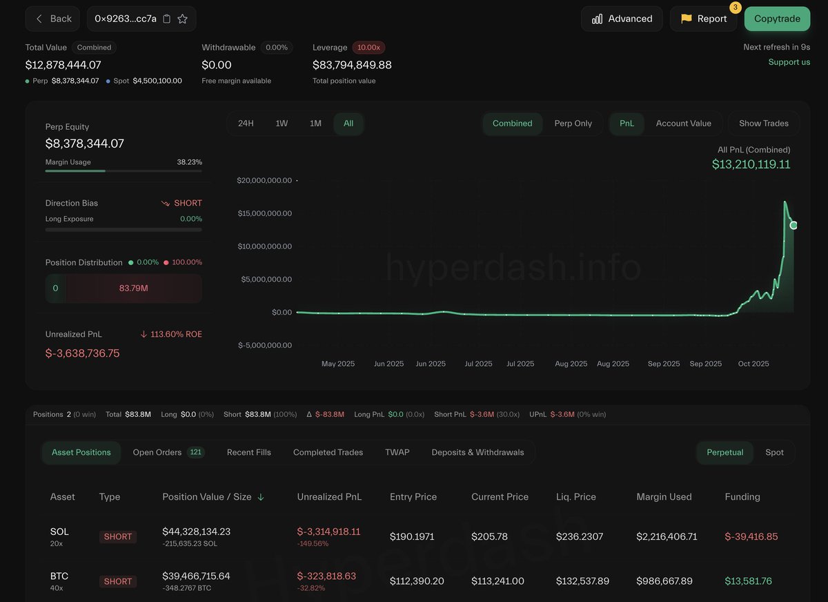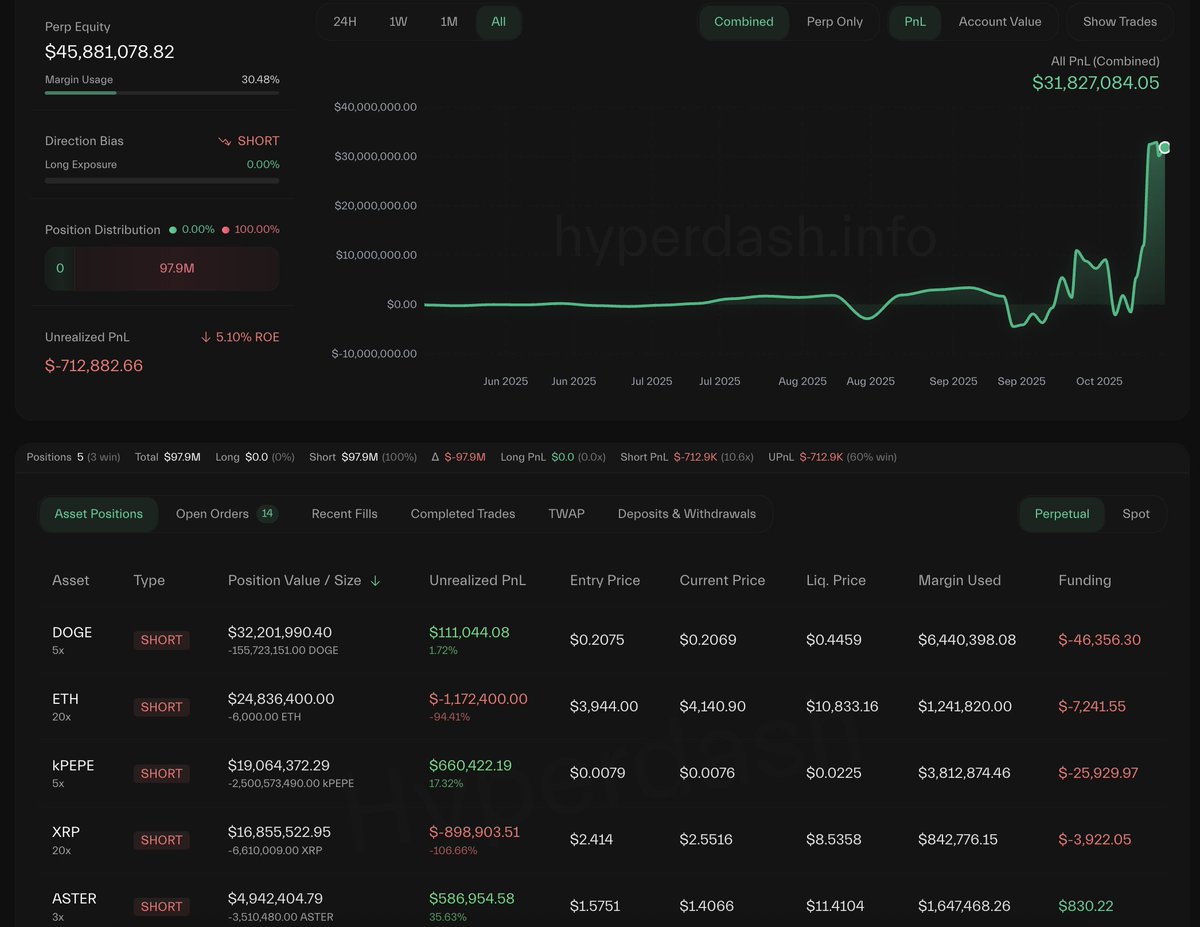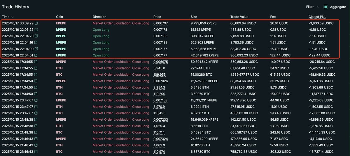 似乎每次他回到 #Hyperliquid 开新仓位……用不了多久他就会被消灭。