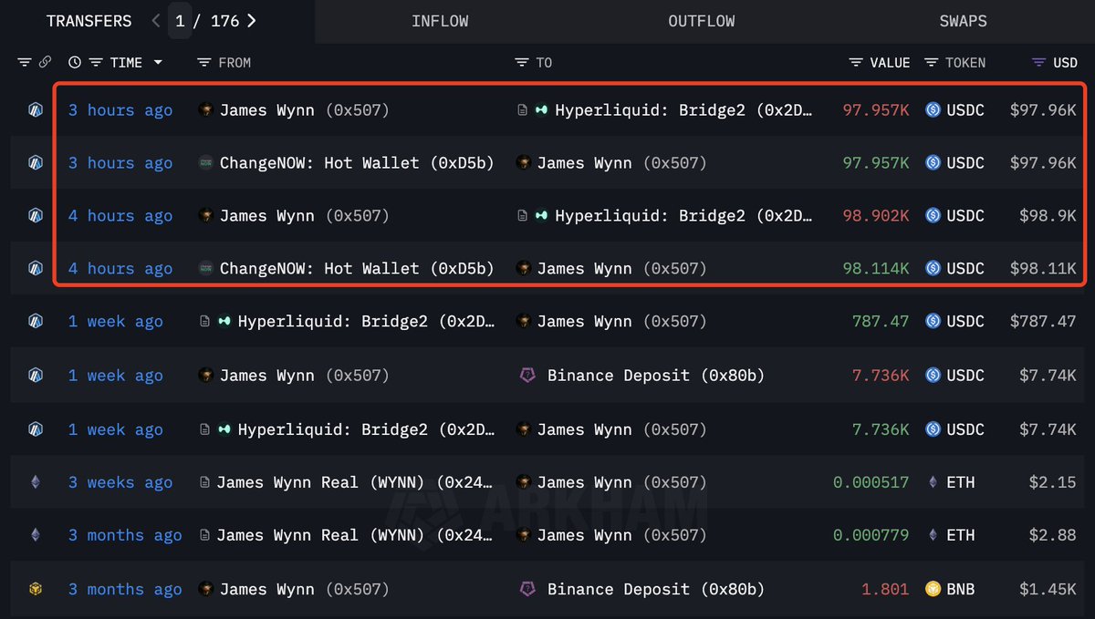 James Wynn(@JamesWynnReal) 重返 Hyperliquid!