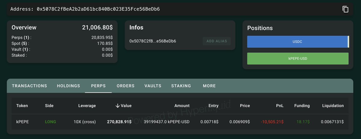 剩余仓位:3920 万 $kPEPE($271K)