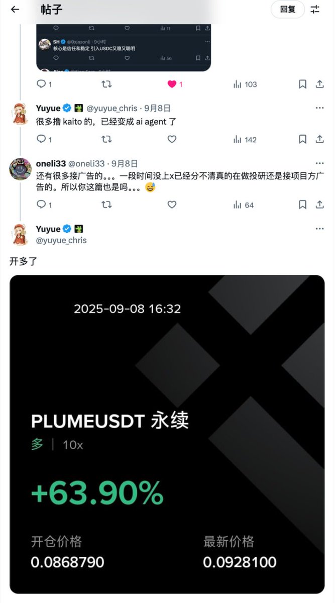 3、对 $Plume 的代币价格本质算是一种利好,我之前说了多次,继续看好