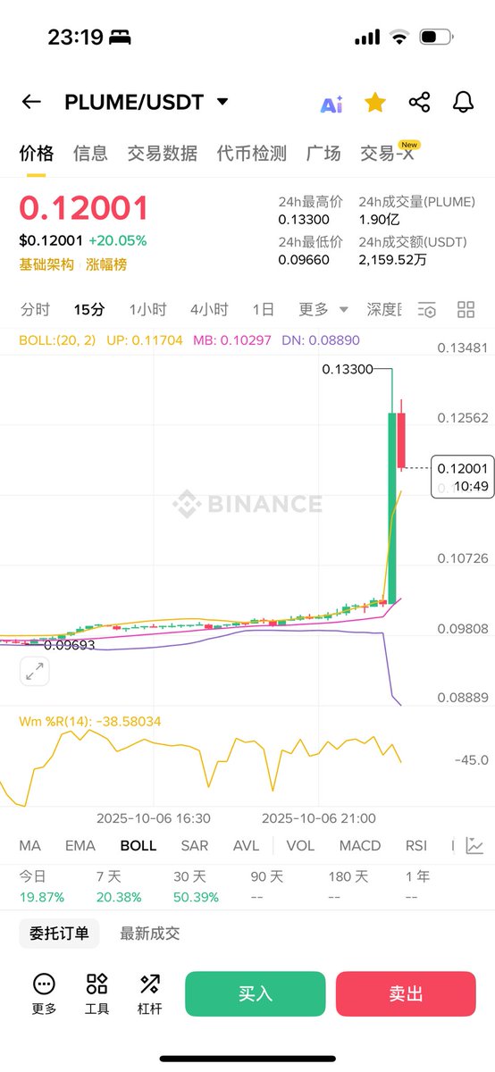 还在睡觉被朋友叫醒,告诉我一直持仓的 $Plume 迎来了暴涨,市场直接拉了30个点