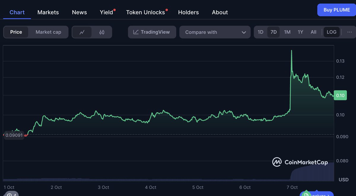 上次原生 USDC 集成到 @plumenetwork 公链的时候我就说过这可能是个信号,还有小伙伴跟我确认是不是广的 😂 距离当时短短 2 周不到,涨了得有 50%