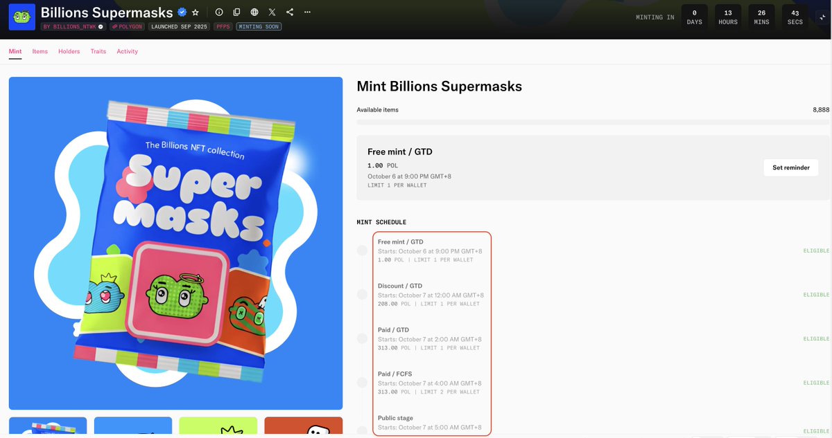 现在推出了第二个NFT Supermasks。给宝子们搞来了3个白单。🎁