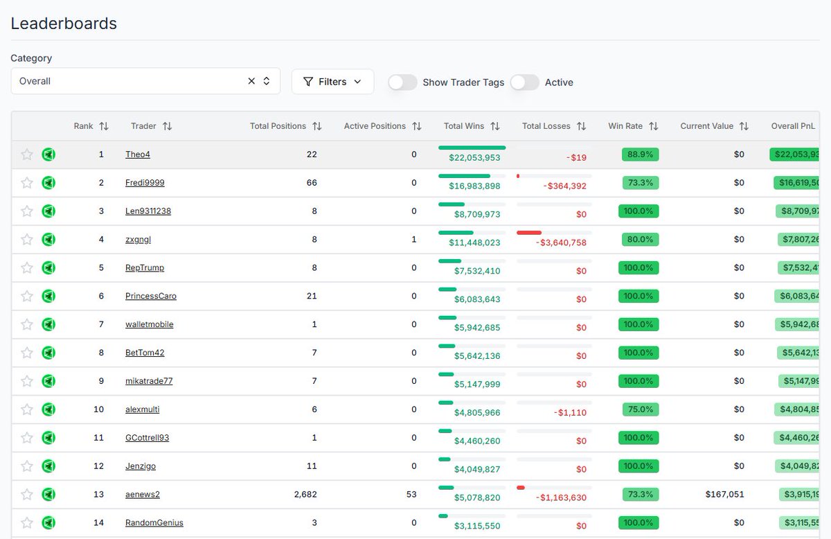 都是一些大神,可以看下他们的PNL,找胜率高+总收益高的聪明钱跟单,比自己默默彩票流胜率要高很多!