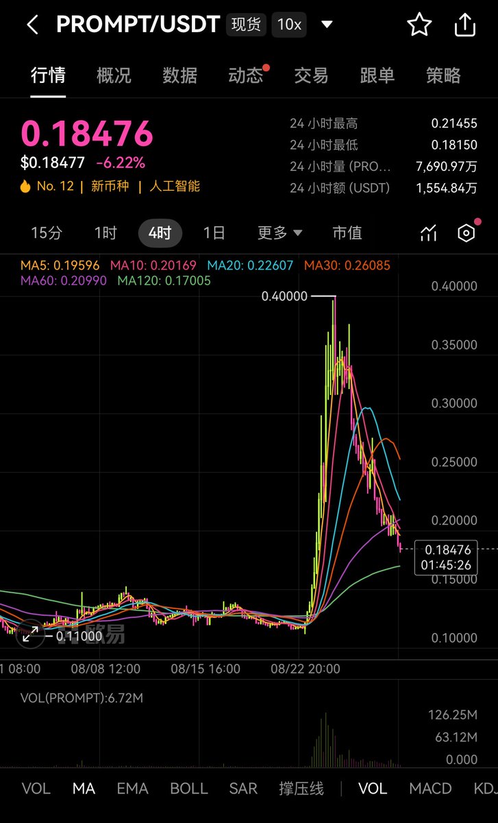 ➡️这几天 @AIWayfinder 的 $PROMPT 拉的很猛,几天拉了4倍最高,这几天回调也挺猛