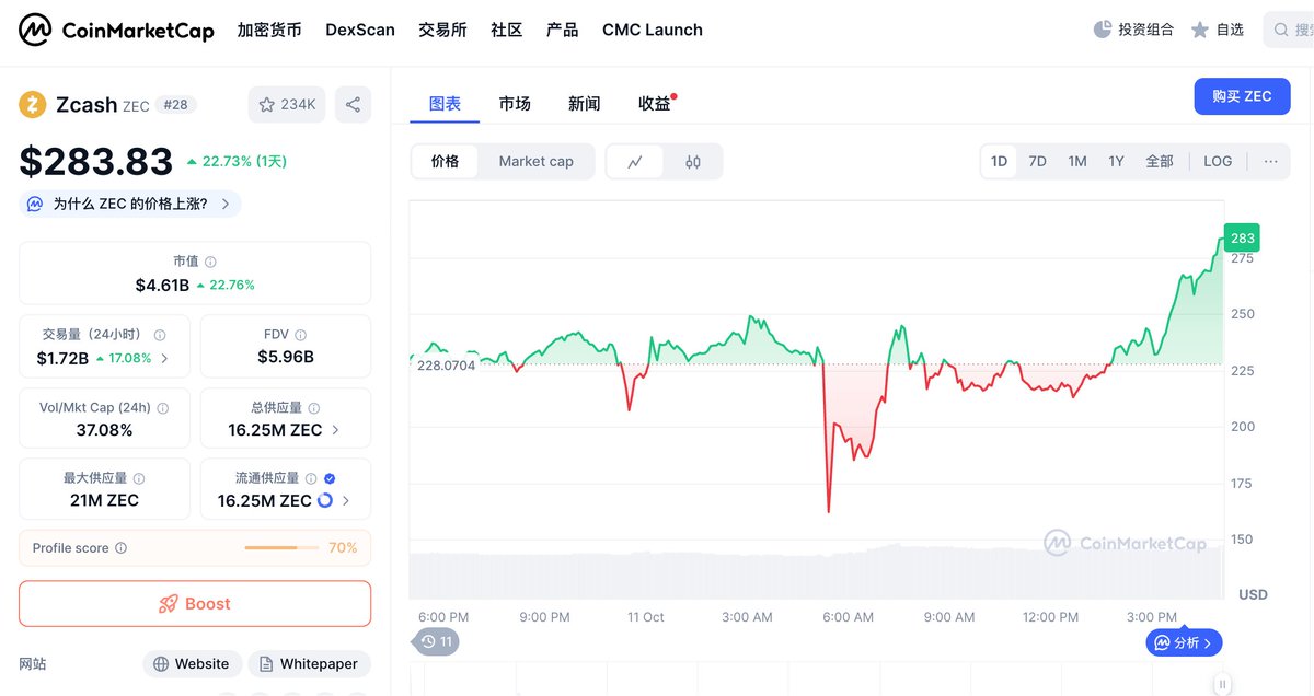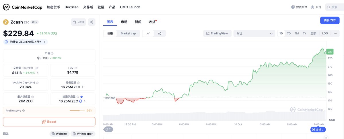 太变态了:唯一一个逆势上扬的家伙! $ZEC 别人跌到99%,他直接逆市 ATH 破新高了!不仅技术上是针对比特币的保险,目前看来,价格也是! @naval 一声吼还是管用的!
