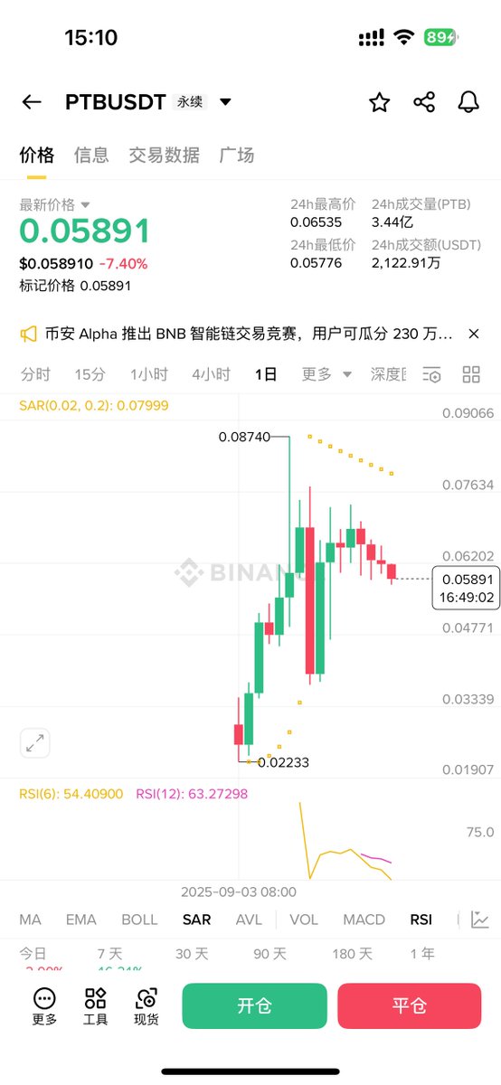 目前在币安的交易大赛在22号晚上11点59结束,还有大概 3 天时间可以参与,不过交易大赛后面估计波动很大,建议想参加 $PTB 交易大赛的趁早。