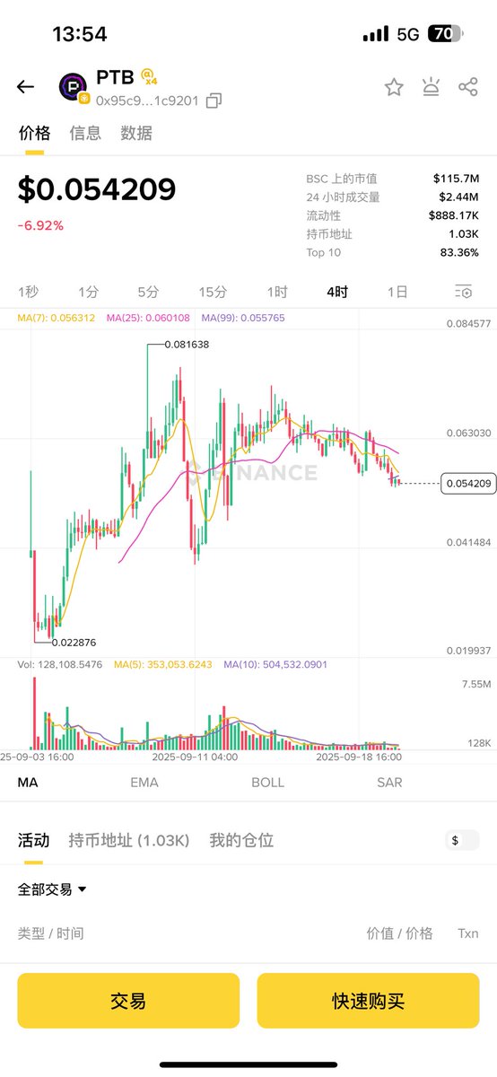看了一下 $PTB 价格也是比较稳,0.055左右
