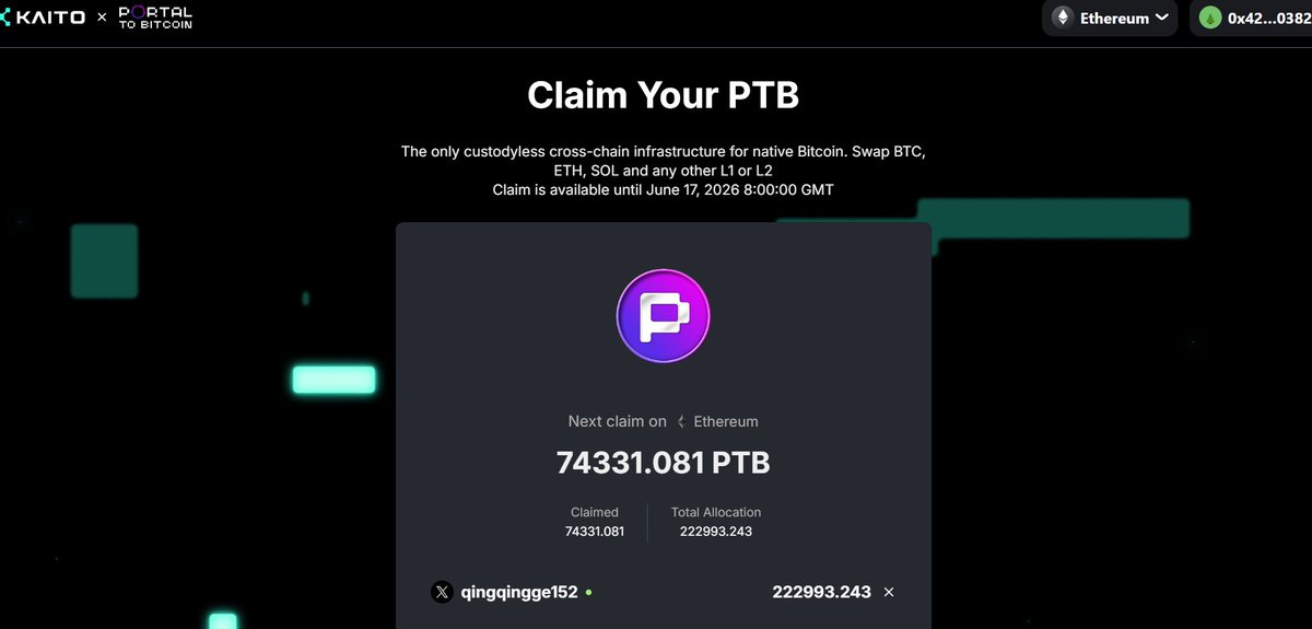 @PortaltoBitcoin @KaitoAI $PTB