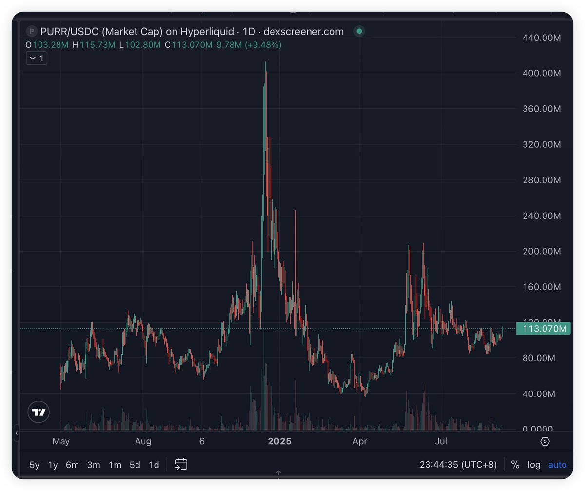 早上看见 @GCRClassic 搞了 $PURR 直接冲进去也有80%了。