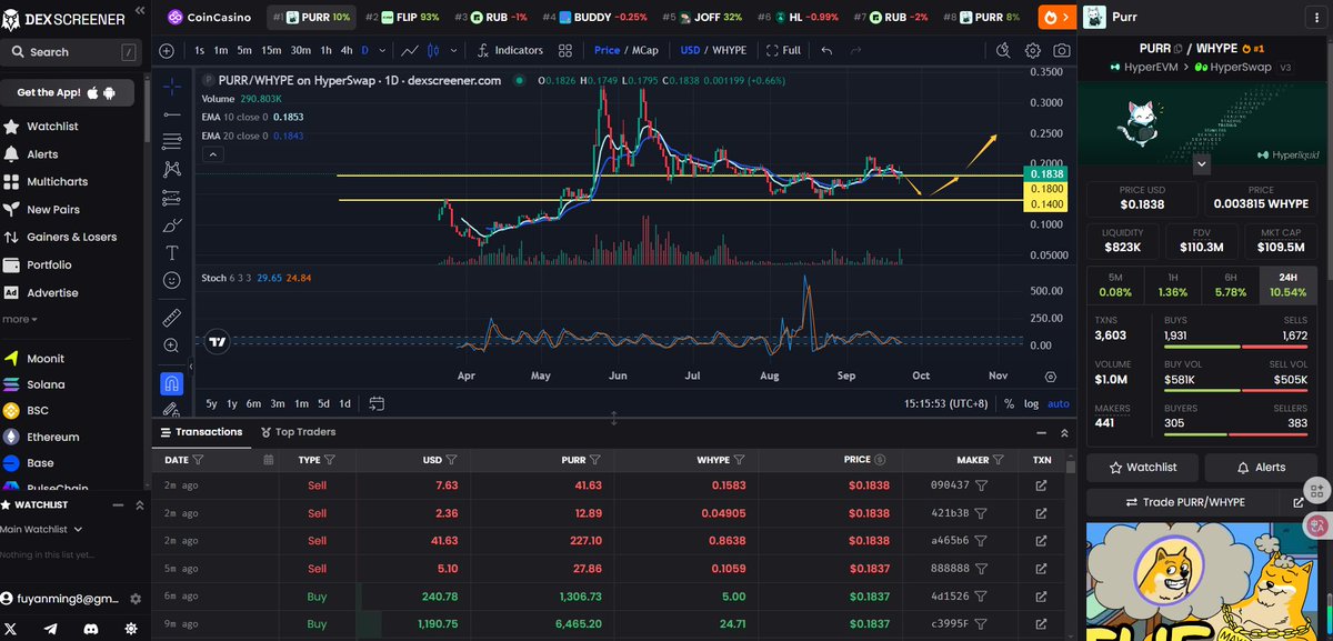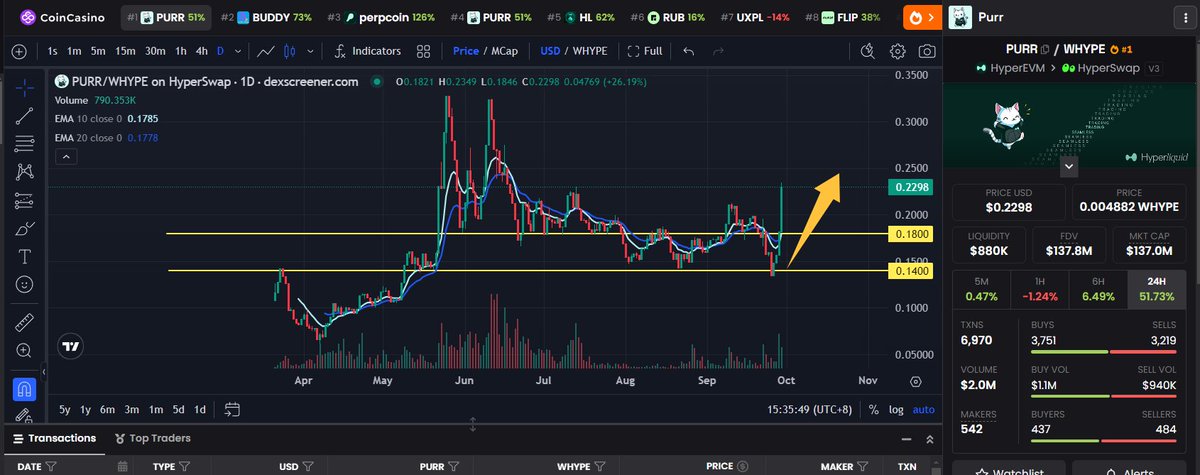 $purr =官方吉祥物meme,2亿,交易手续费回购,交易量大。