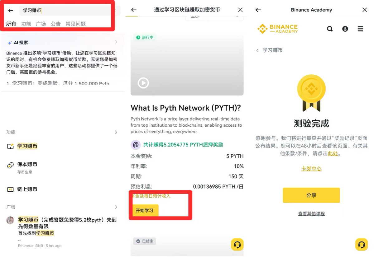 【速做,还有名额】币安学习赚币,给 5 个 $pyth