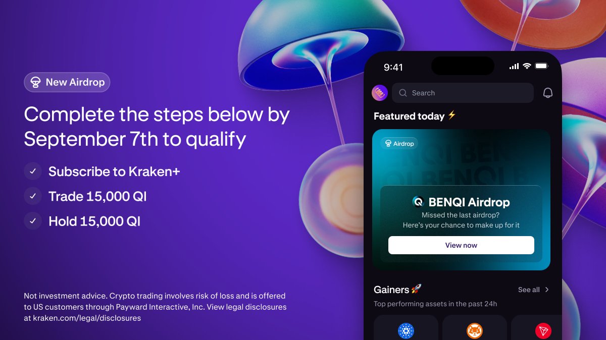 我们回来了@benqifinance为Kraken用户拖下25万美元的Qi! 📱仅在Kraken App上可用& ⏰于9月7日下午11:59结束UTC 立即开始⤵️ *适用地理限制