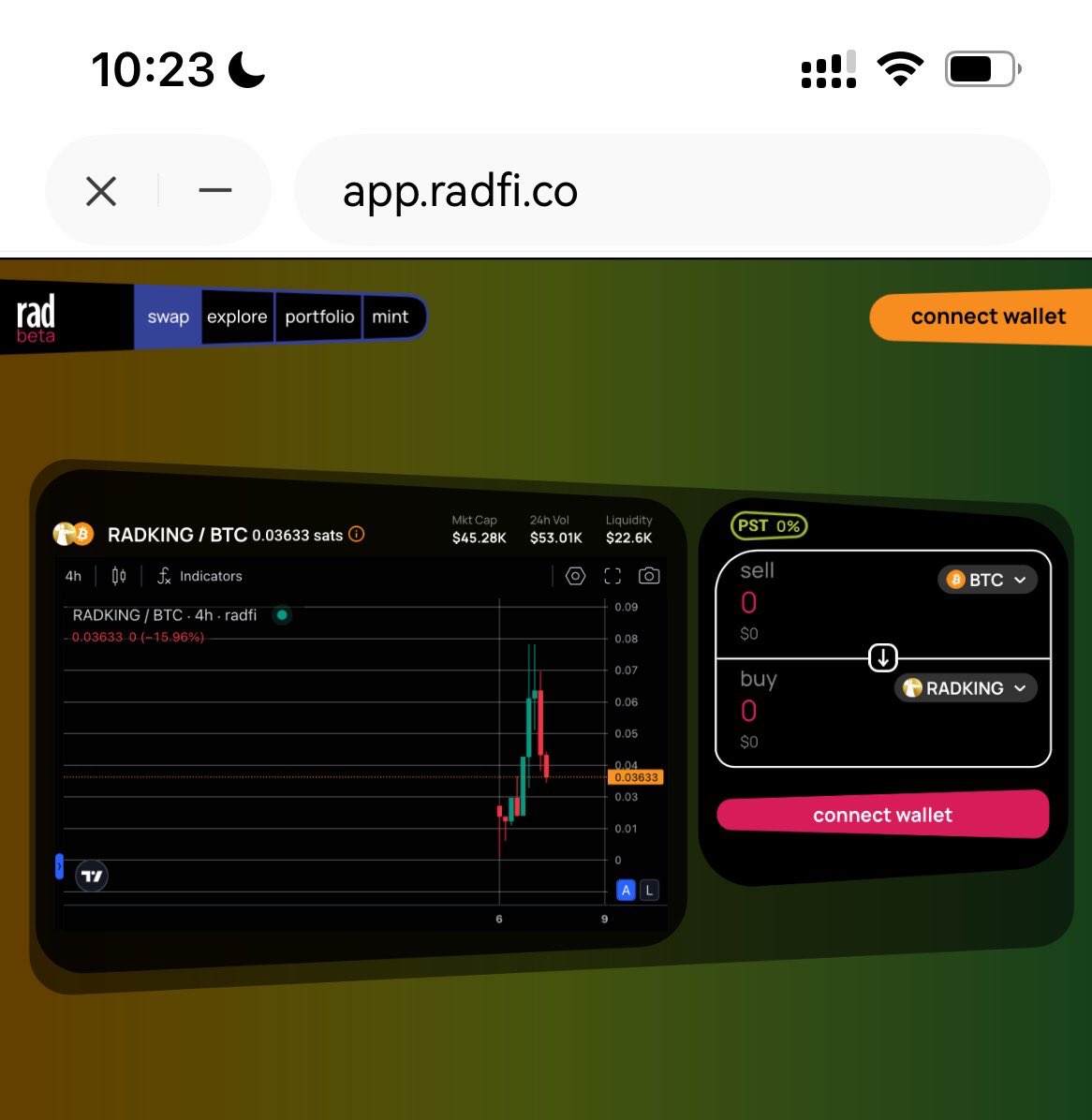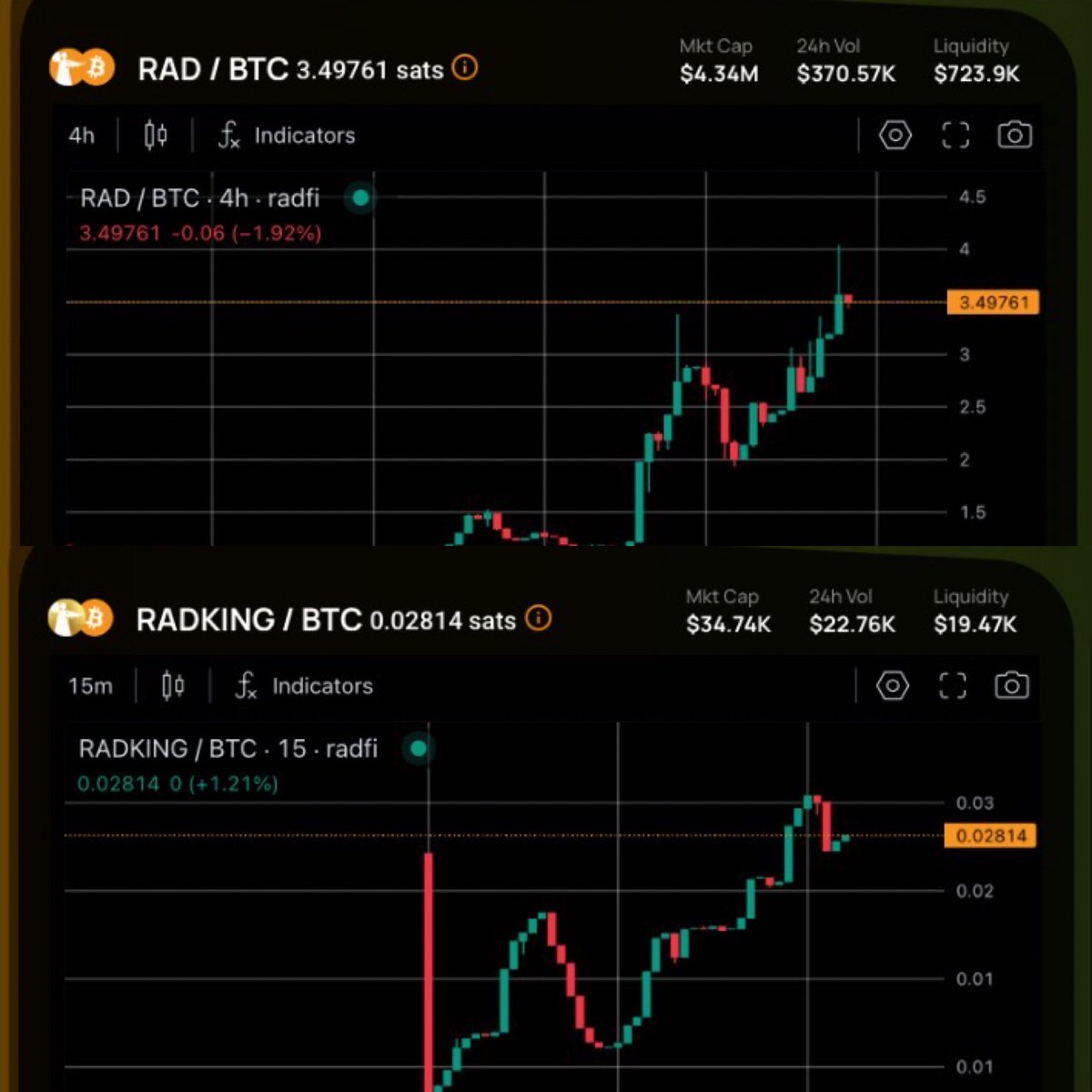 @radfi_btc 龙头符文代币 $RAD 今日再次突破 1M 美元市值, $DOG 创始人 @LeonidasNFT 发文评论 radFi 旨在复兴比特币 L1 上的 Runes 协议。(这玩意最近有人在炒作,涨幅不错)