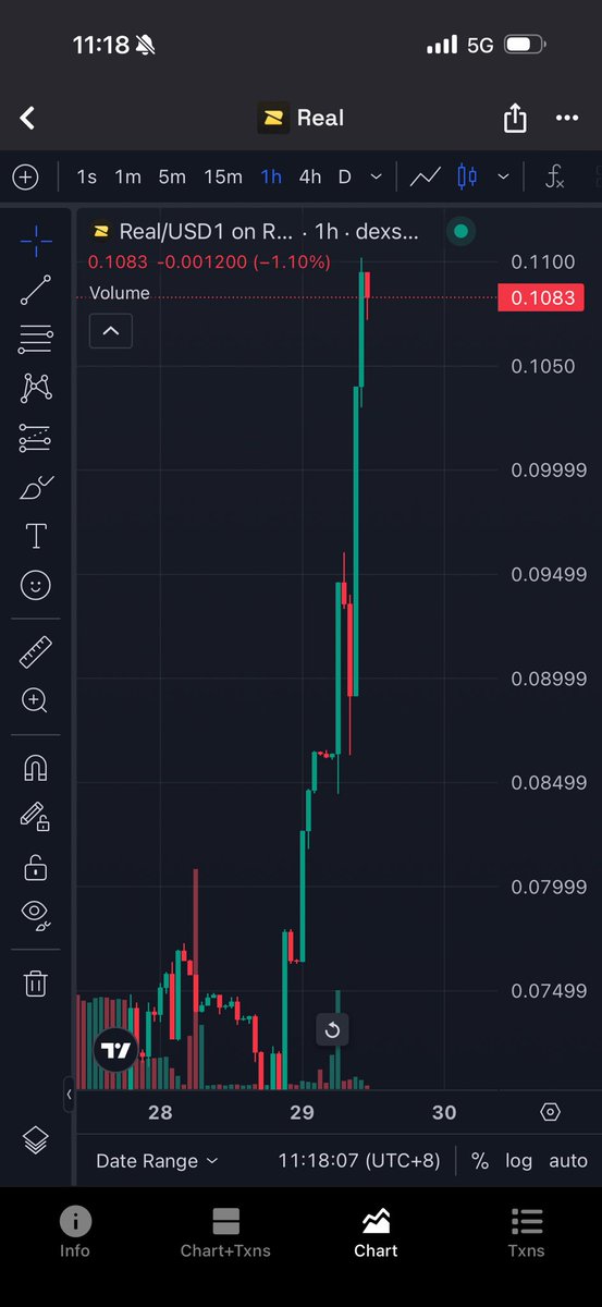 虽然 Moonshot listing 的赚钱效应远不如从前,但能这么快上线至少说明 $Real 可能是有的东西的。 这玩意儿买了还没卖过,现在 K 线走的快跟心跳停止了一样,随缘了。
