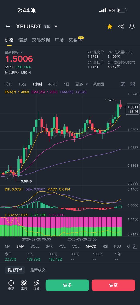 今天最明显的是 $XPL 强势启动,生态上也有Meme跑出来形成了小马拉大车的效应。 这个标的是过去一段时间比较少见的大户,超大户共识极强的标,与 $Aster 开盘洗筹干净后爆拉不同, $XPL 在1刀前后换手区域依然有不少盈利很多的鲸鱼没有下车,而且一些人还在继续加仓。 上一个看到这种共识还是 $Hype 启动的阶段。 我反正躺好了,求🐶大户们带飞