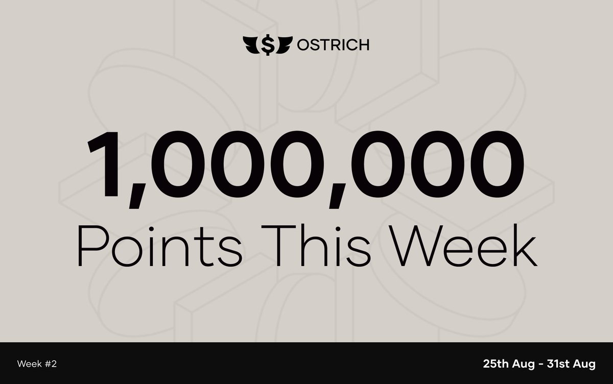 在 Ostrich 上交易可在 8 周内赚取积分,每周发放 100 万积分,在 TGE 兑换为 $RICH 代币。交易量越大,每周分配的积分越多。