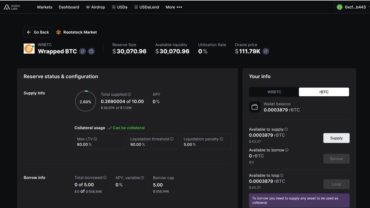 3️⃣在 Avalon 完成借贷/Supply