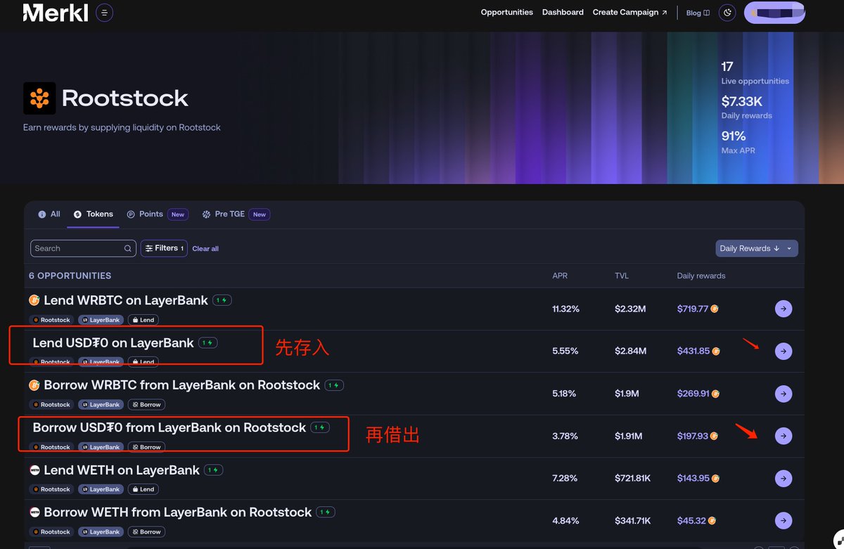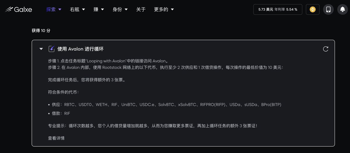 4️⃣额外彩票:在 Avalon 使用 Rootstock 链完成大于10u的 2 次供应和 1 次借贷可以拿下额外 3 张票(即步骤3)