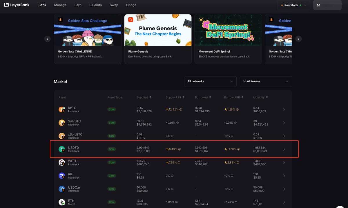 @rootstock_io 是比特币领先 defi 层,拥有以太坊可编程性 defi + 比特币级安全性,允许用户将 btc 桥接到侧链上(也能轻松从 evm 跨链到 rootstock ),兑成等值 rBTC 后在不离开比特币生态前提下参与各种应用