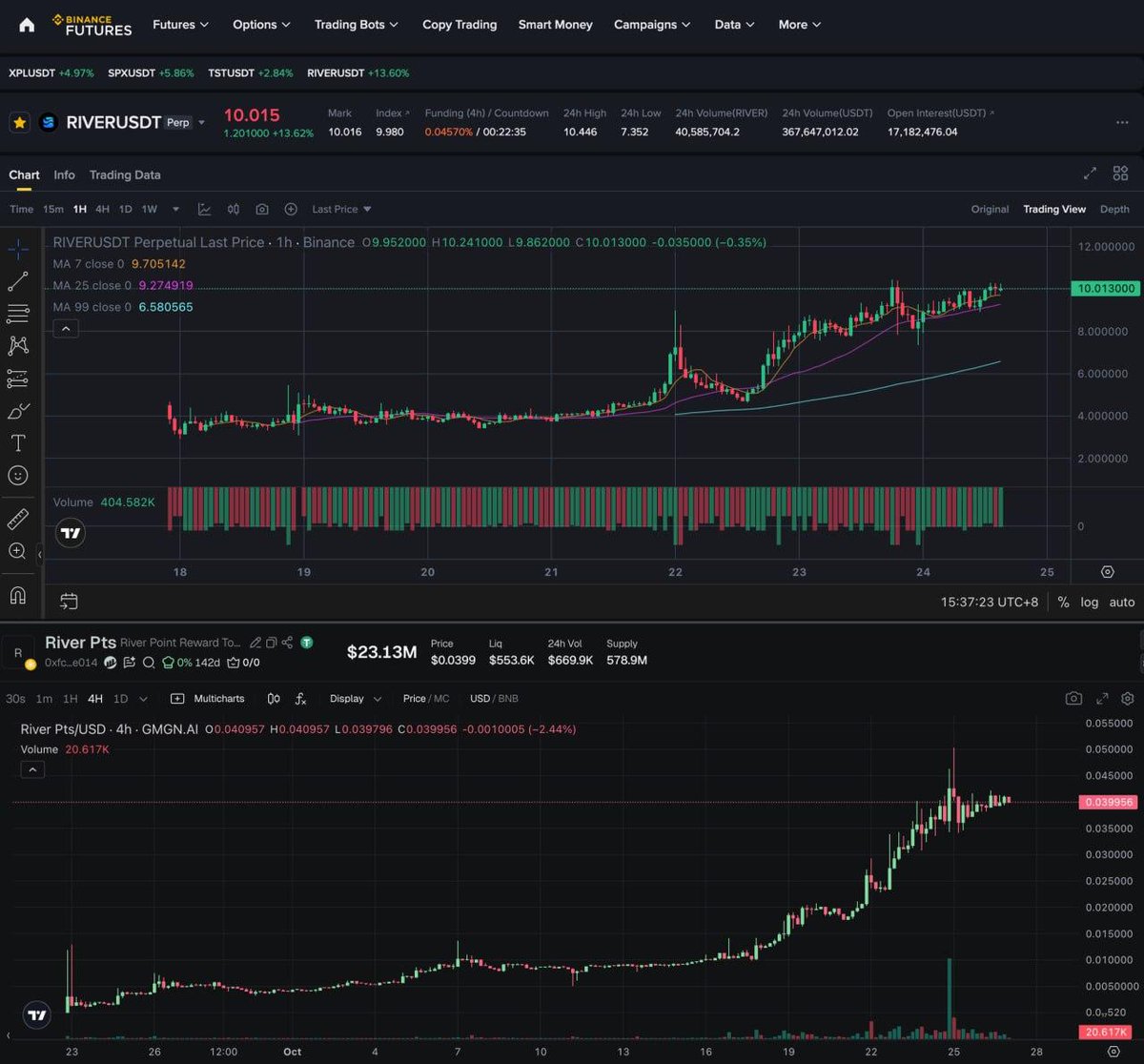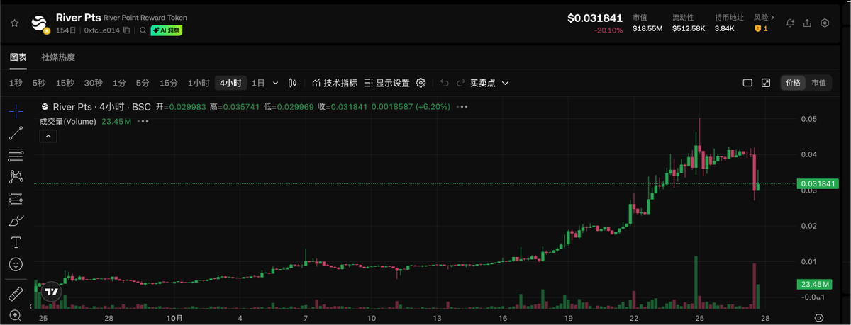 这种机制下, $RIVER 代币和 $RiverPts 积分都在市场上表现出色,价格连续突破新高。