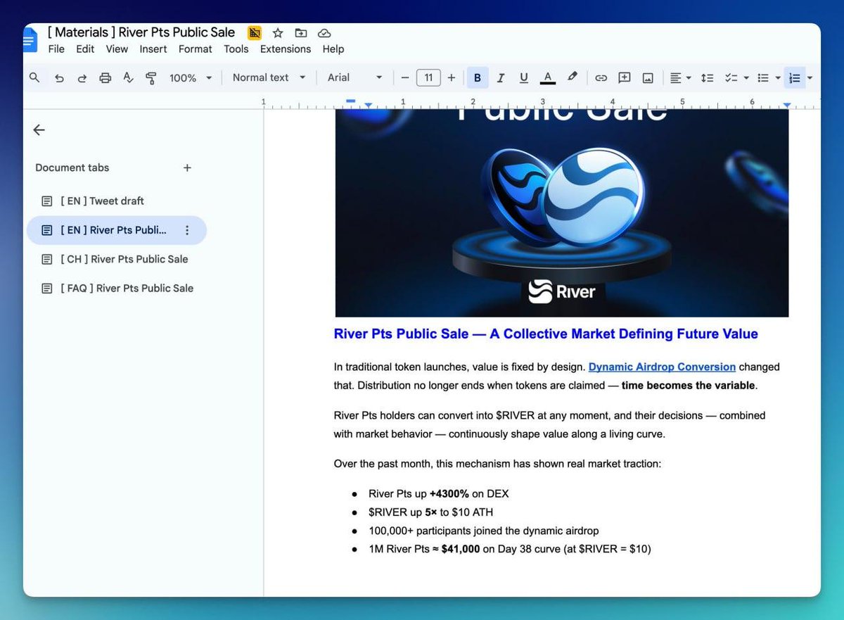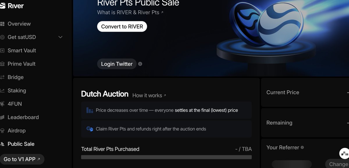 动态空投转换使时间成为价值的源泉,而公开销售使市场成为下一个维度。从时间到价格,从设计到发现,River正在持续演变价值的创造、分配和定义方式。