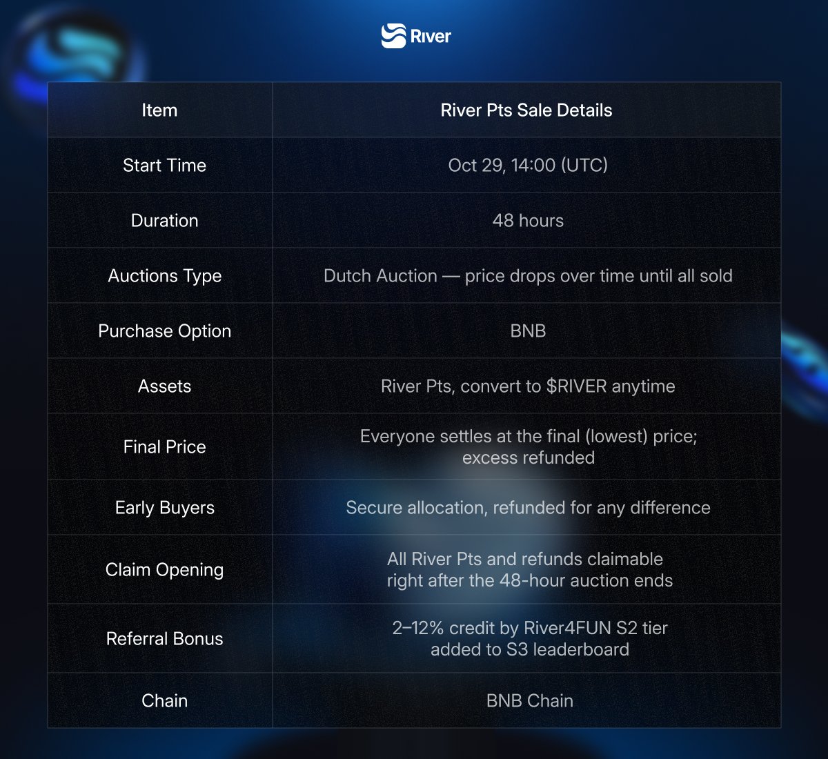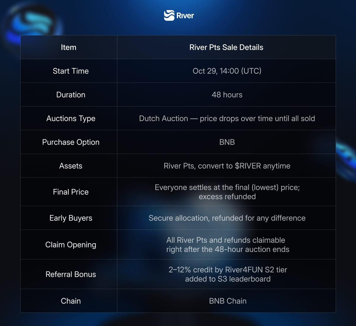 快速获取River Pts:一场48小时的荷兰式拍卖即将启动!