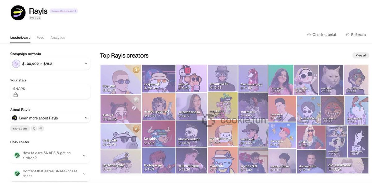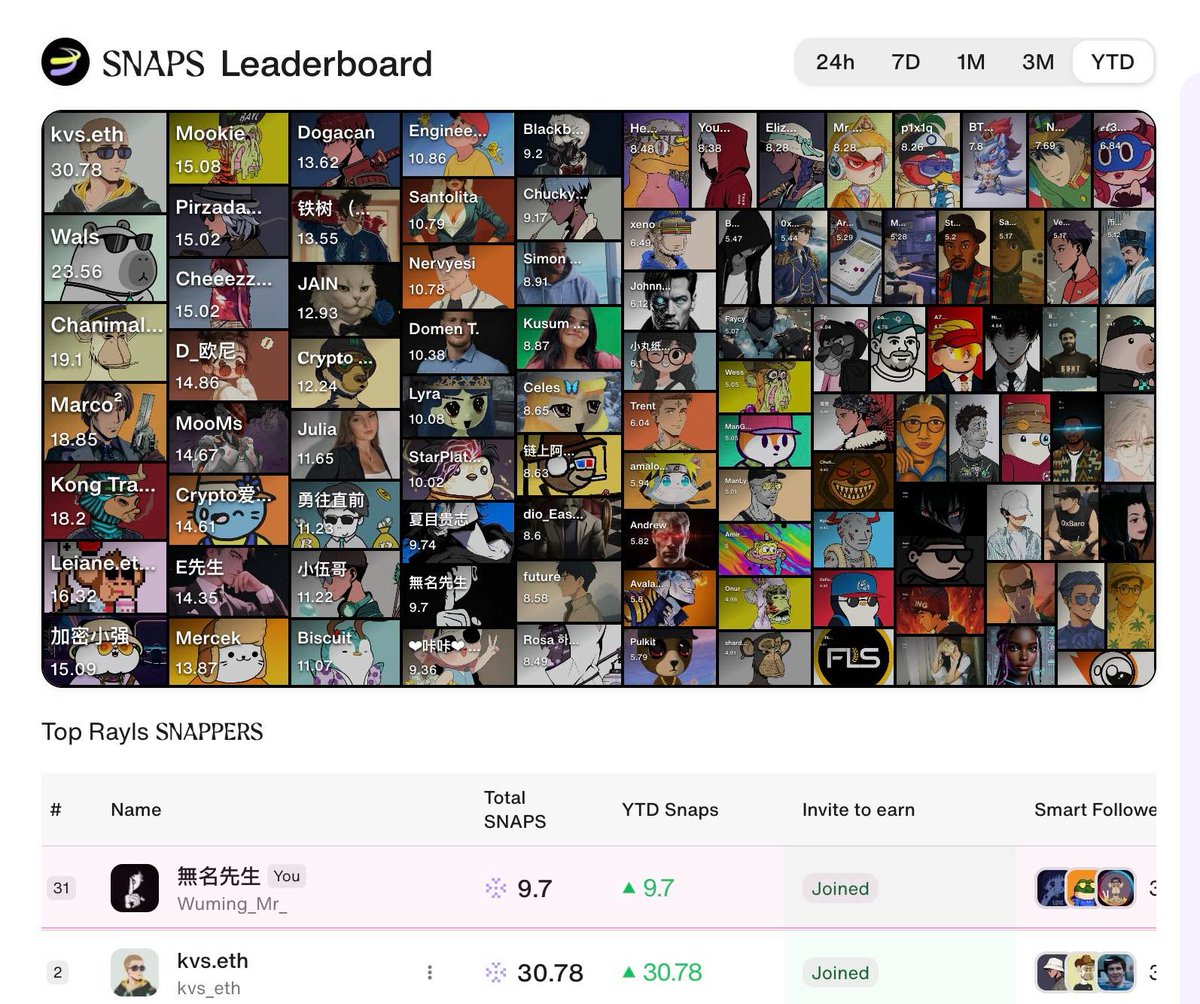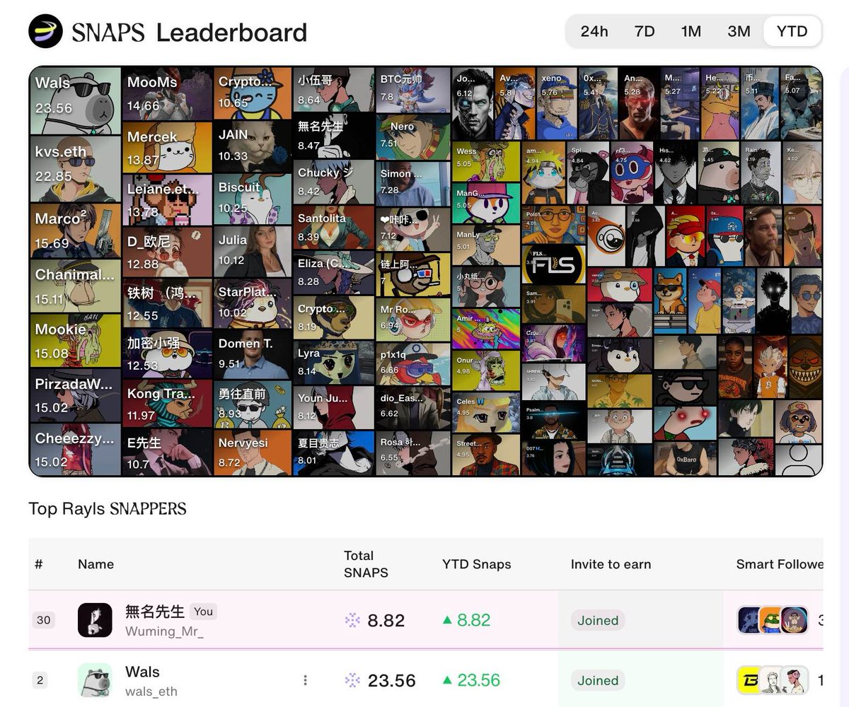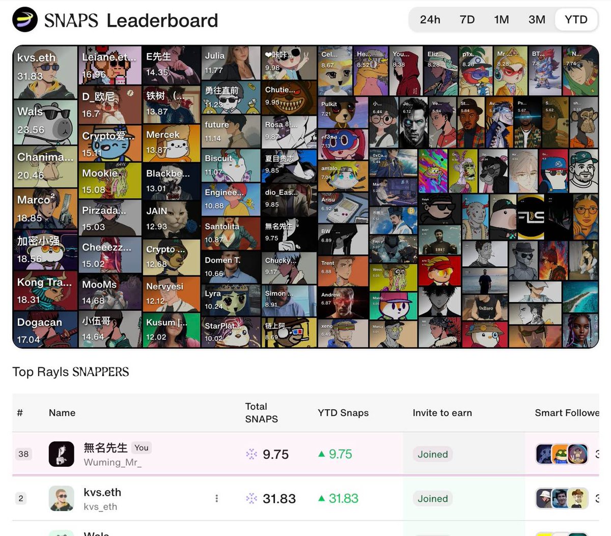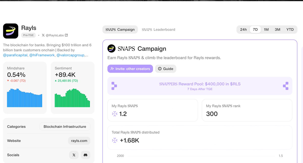 💎 「Rayls Snaps」活動發放了 50 萬美元激勵,累計超過 100 萬次社群任務互動,熱度持續攀升。