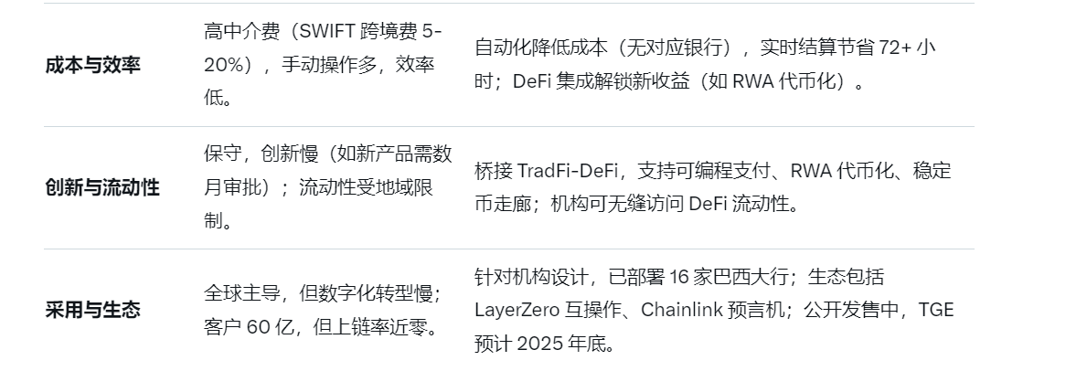 这意味着银行不必局限于“许可链”的孤岛,可以接入外部流动性和DeFi生态。