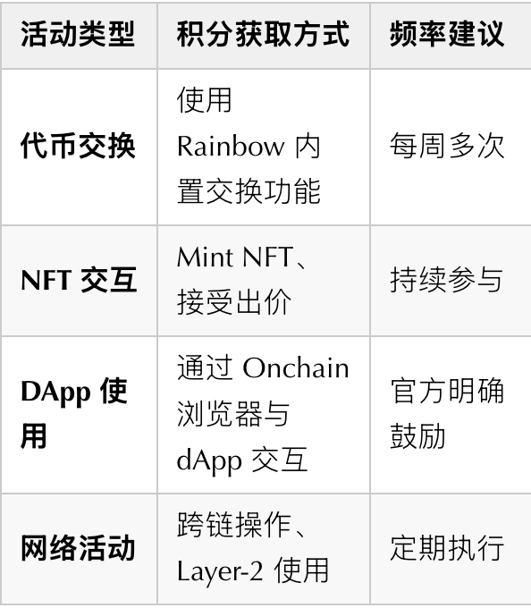可以通过彩虹钱包中的各种活动来获得积分