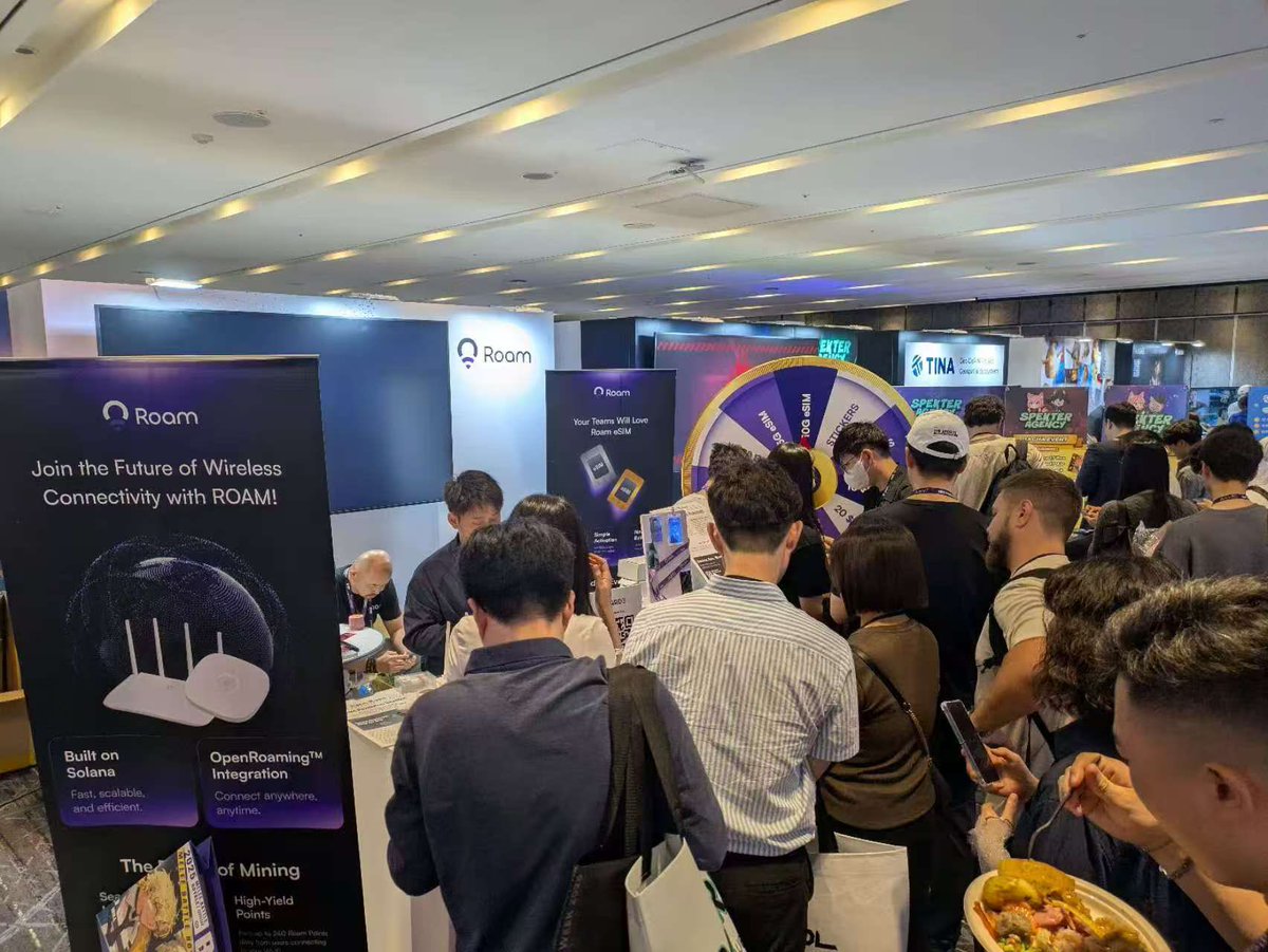 Roam 的去中心化WiFi和eSIM解决方案吸引了大量关注,现场的奖品转盘活动更是点燃了热情。大家排队拿礼品,和韩国社区互动超热烈,展示了Roam在 DePIN 领域的巨大吸引力和潜力。