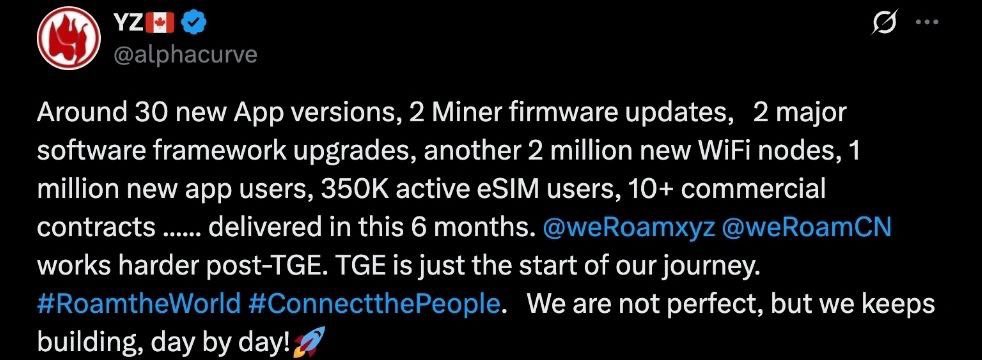 因此,$ROAM 的链上韧性并非孤立事件,而是与产品的真实增长与技术迭代紧密相连:节点扩张提供覆盖,eSIM 提供付费场景,App 的高频交互产生数据,构成了一个可持续的商业闭环。