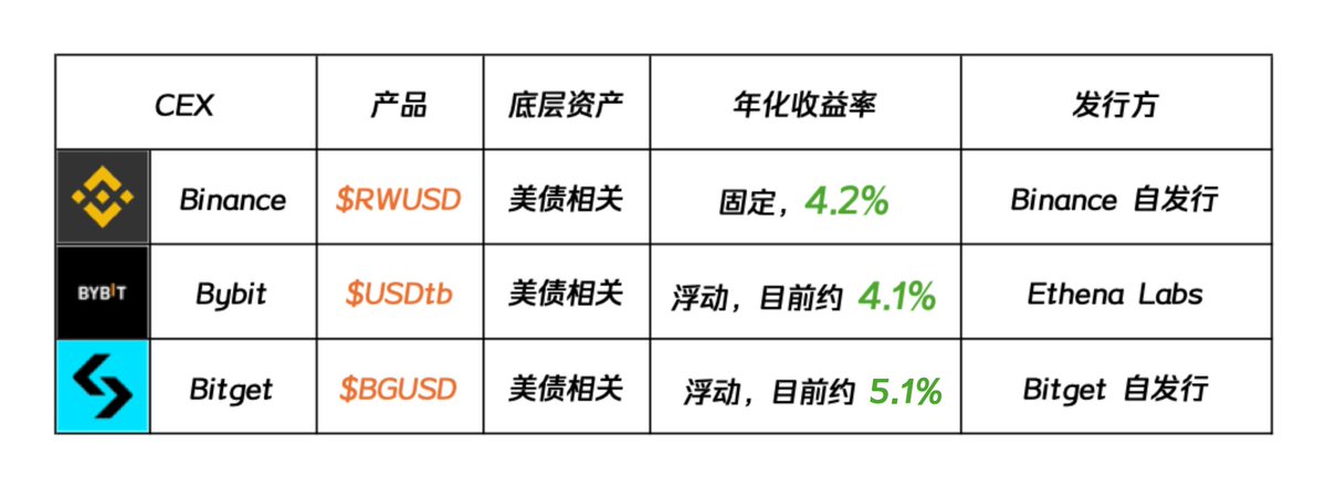 目前对比了下其他交易所,就币安的是固定年化,Bybit的 $USDtb 是浮动的,约4.1%;Bitget的 $BGUSD 是浮动的约5%。