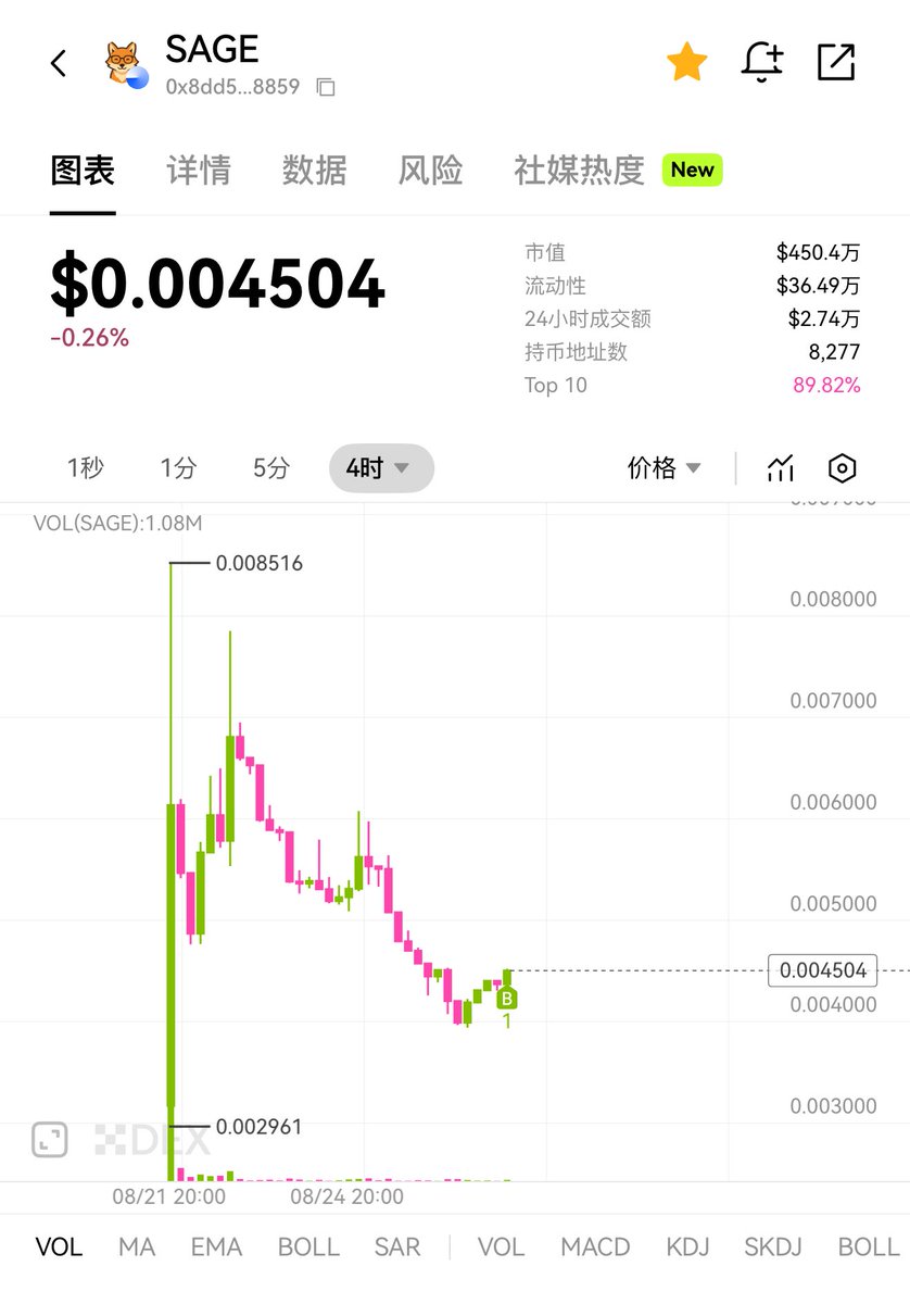 该地址目前除 $ETH 外最大持仓是 $SAGE @CeremoniesAI, 7万多刀的仓位。