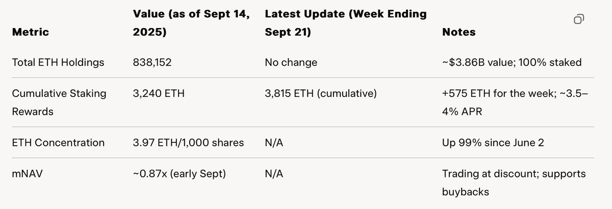 自己这几天持续买入了 $SBET , 他们用低价格囤币,赚staking yield(仅仅一个月就赚了2,300 多枚的收入,现阶段80多万X 3.5% X $8000 美金 那年化收入会是多少? 28,000枚 X $8,000美金目标价 = 2.24亿美(现价格$4400, 也超一亿美金收入)追求的量和收益的平衡。而且打这么mNAV大折扣,也启动了回购机制,这更稳。.@ethereumJoseph #Ethereum