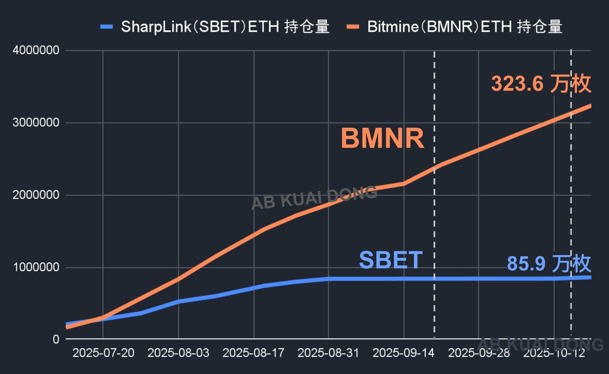 坏消息:现在 ETH 财库储备板块,已经被 Tom Lee 的 BMNR 彻底领先了,短期内没有任何被反超的可能。