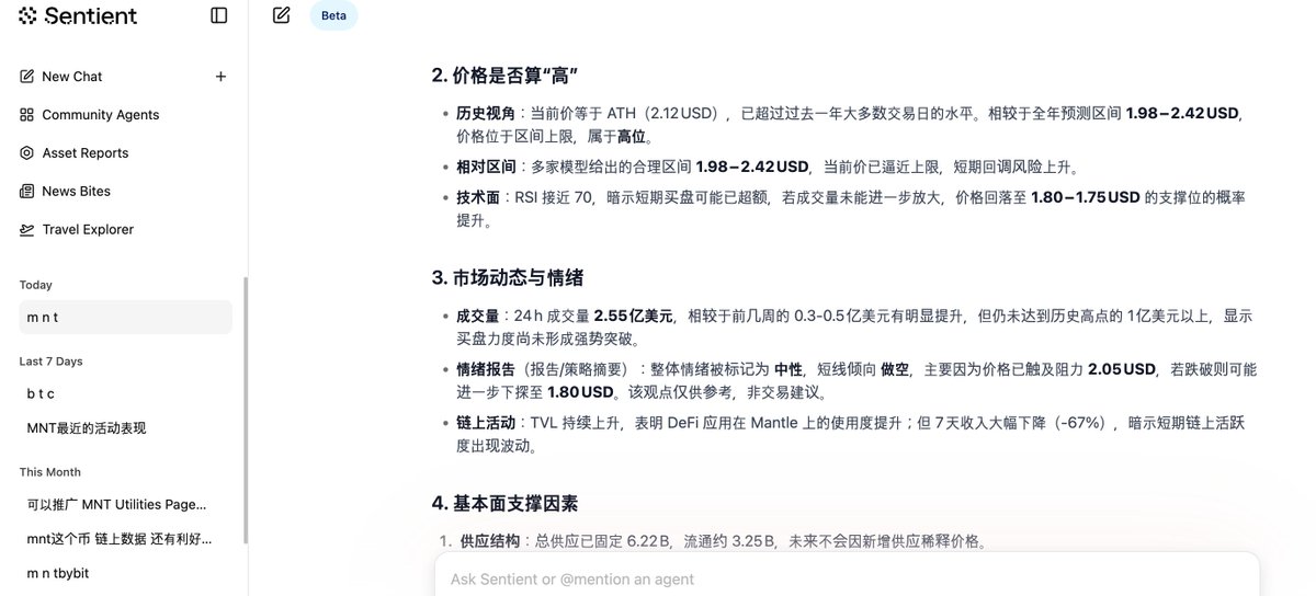 Sentient 最近在 Sentient Chat 推出新版升级,GRID 网络继续扩容,目标是把“开源 AGI”从概念真正变成能跑的基础设施。思远觉得,这已经不是单纯的AI聊天,而是开始对接真实工作流。