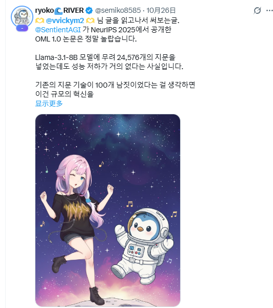 今天早起跑步的时候,楼下便利店老板居然还记得我常点的那杯美式☕️,心里瞬间暖了几分。生活的小确幸总能给人一点力量。跑完回家翻资料时,思远发现 @SentientAGI 这几天的新动作比咖啡还提神,忍不住写下来分享。