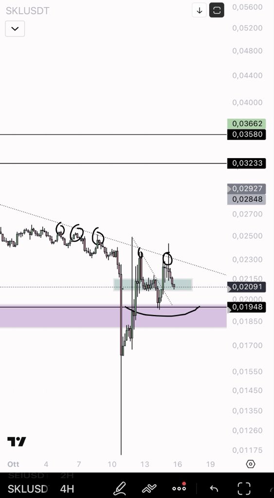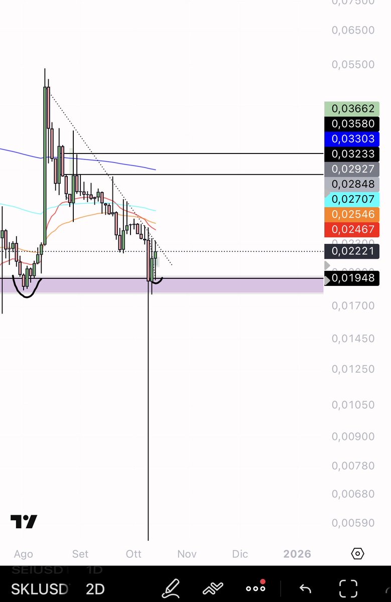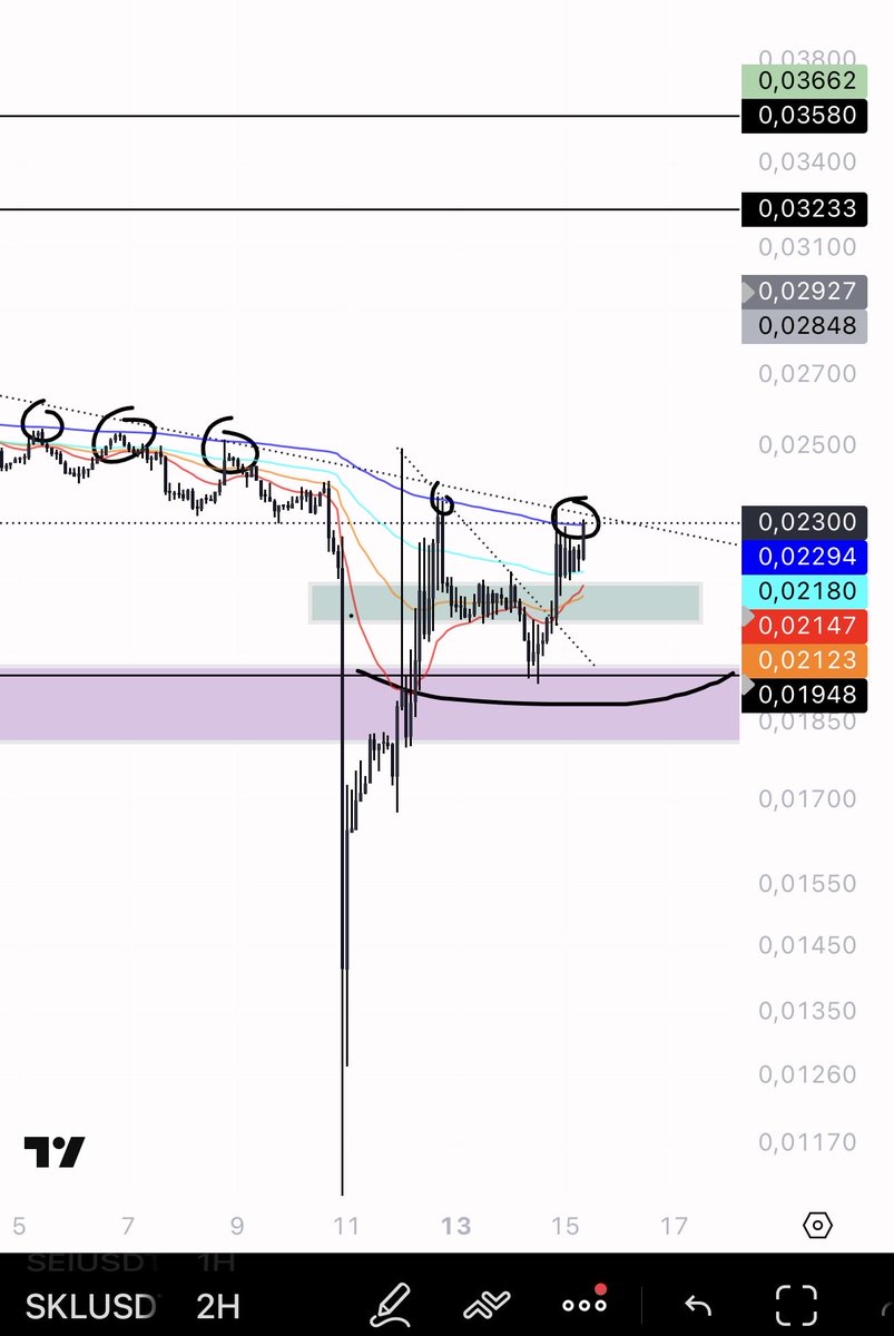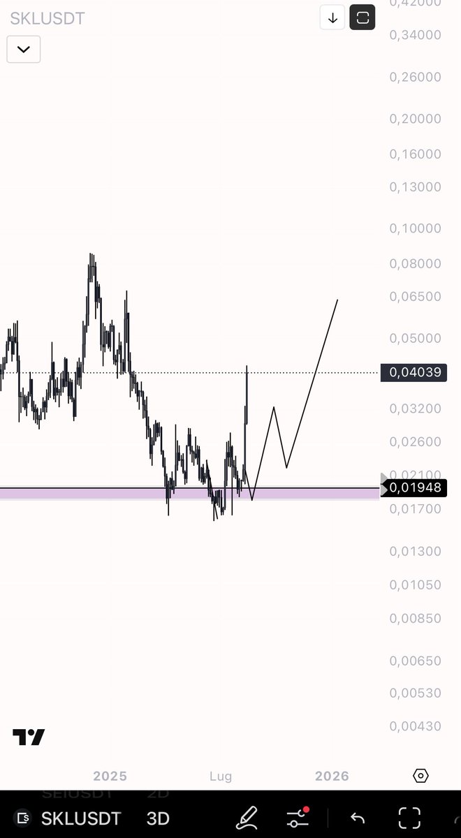 SKL如果你是要进场的话,可以重新等待价格回踩 0.0415 区域,产生反弹后再去进场。