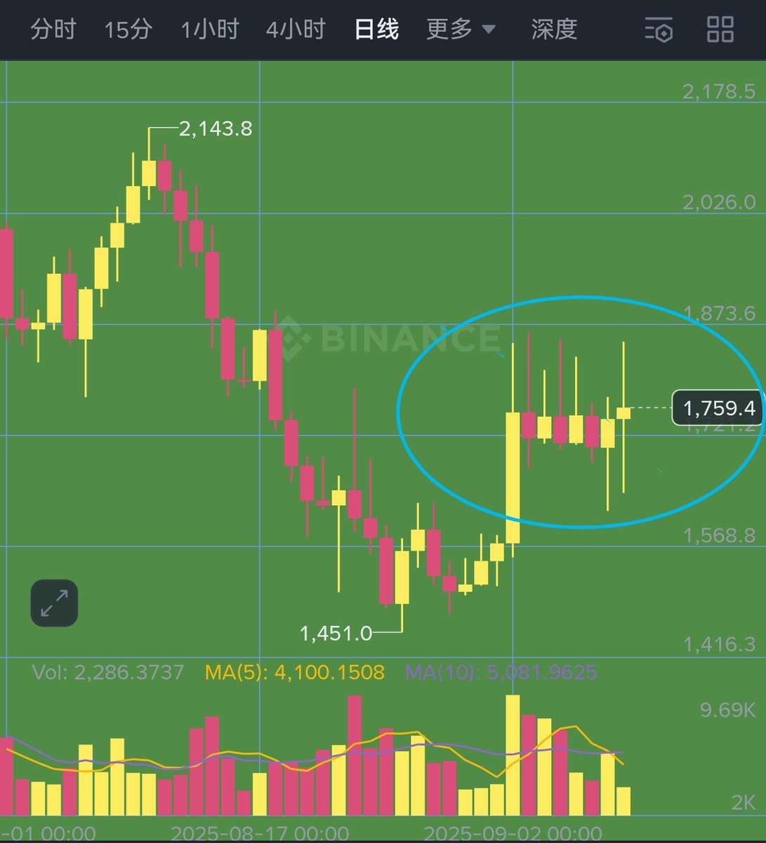还在涨。马后炮分析一下。15号,大所是自动转成新币,k线这些都变成新的。从0开始。 但是链上用户要提前质押,否则有罚款。。这样可能15号之前质押率就会比较高?容易拉盘?