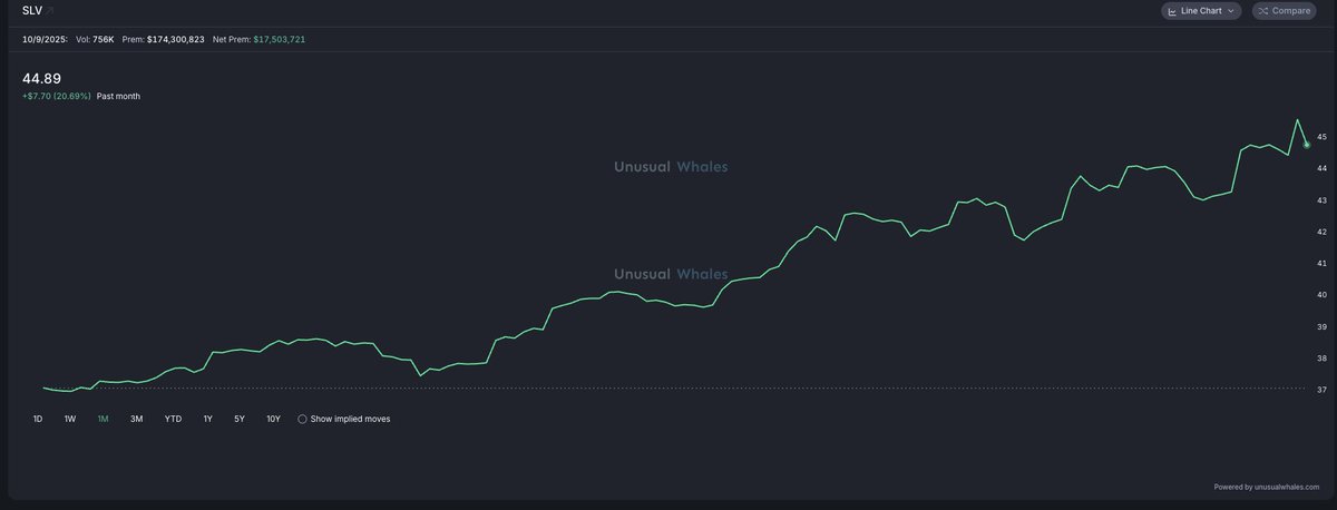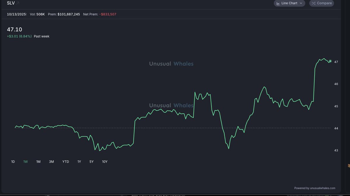 白银 (SLV) 处于历史高位。 检查 Unusual Whales 的净保费: