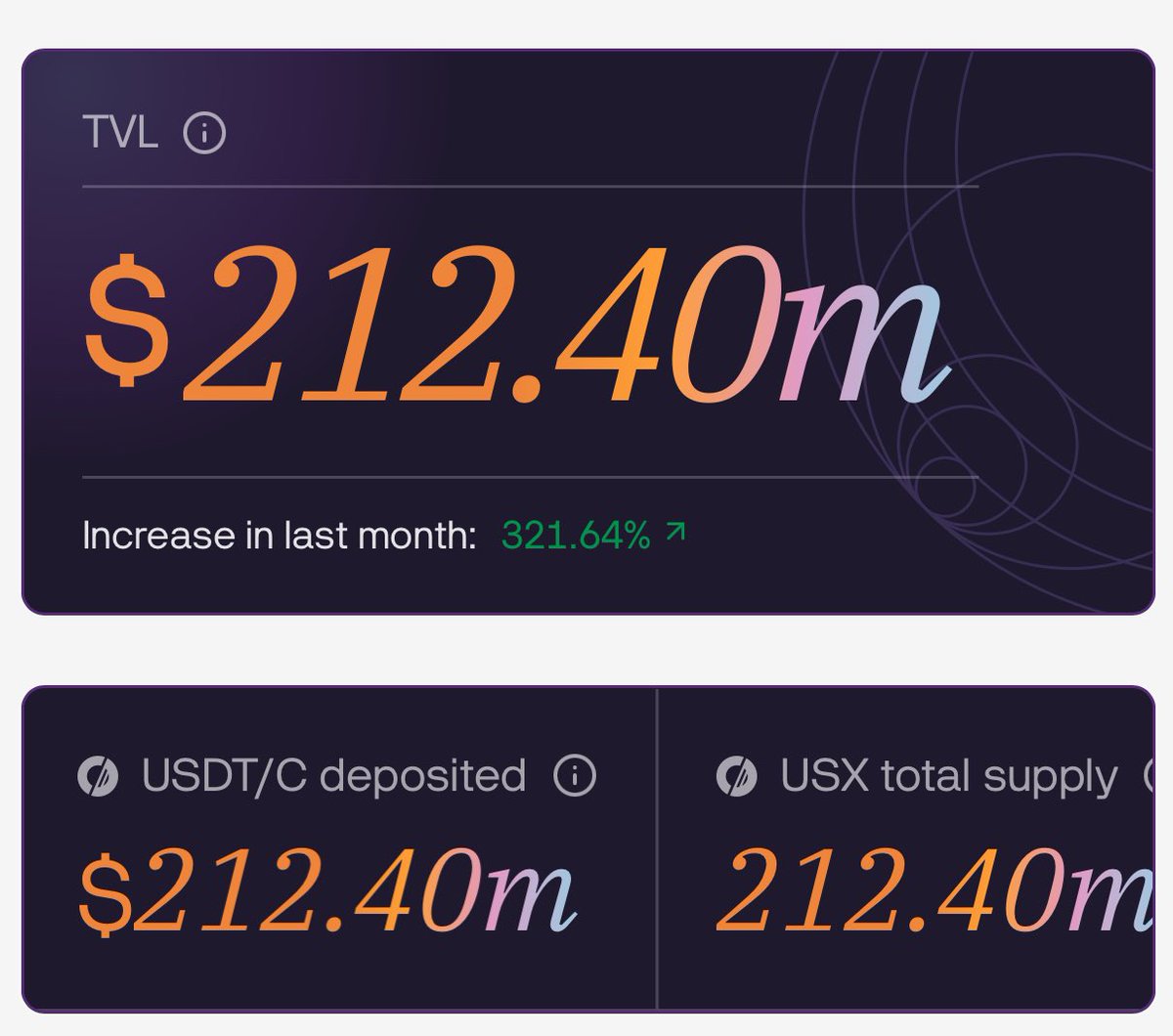 今天刚上线的 $USX 稳定币,一天就已经166M的TVL了,不管背景如何,1天能存1.6亿的项目,肯定是狠角色