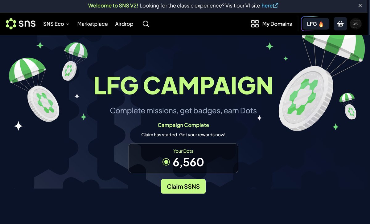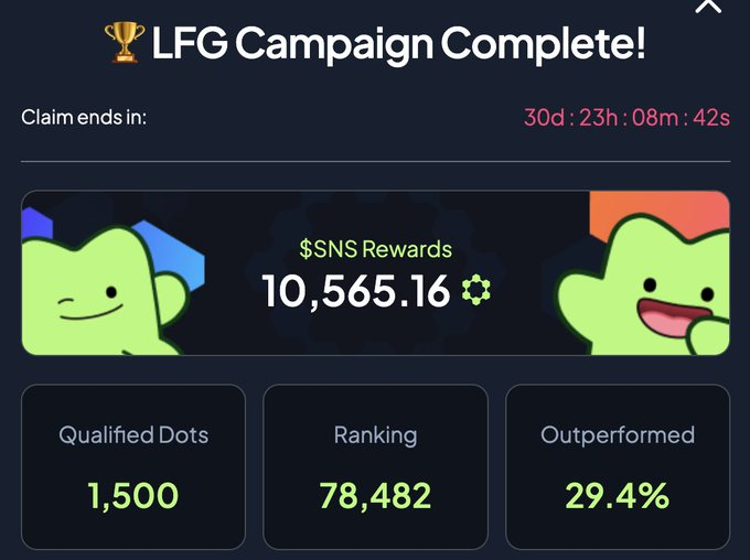$SNS 空投可以领了,新活动 LFG 给 20% 空投: