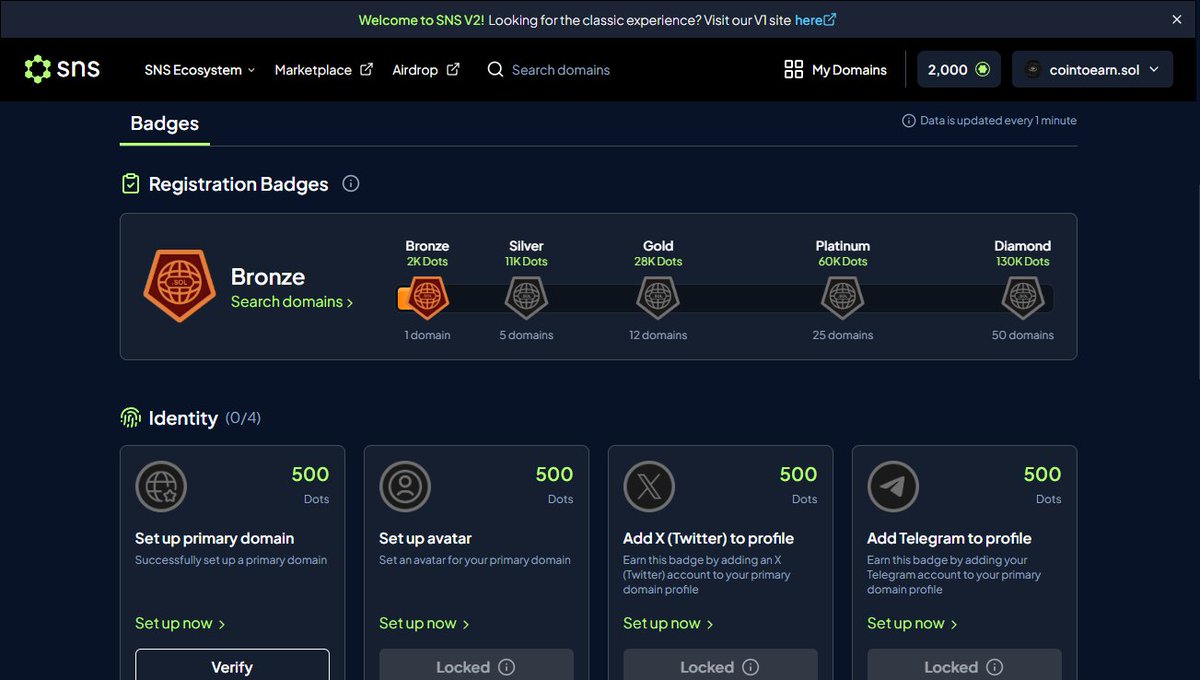 Solana 域名服务 [ @sns ] 即将上线其代币 $SNS 。