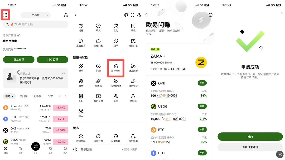 昨天@Mercy_okx 和 @Cayne_okx 告诉我在 @okxchinese 简单赚币已经到了50%的apr。