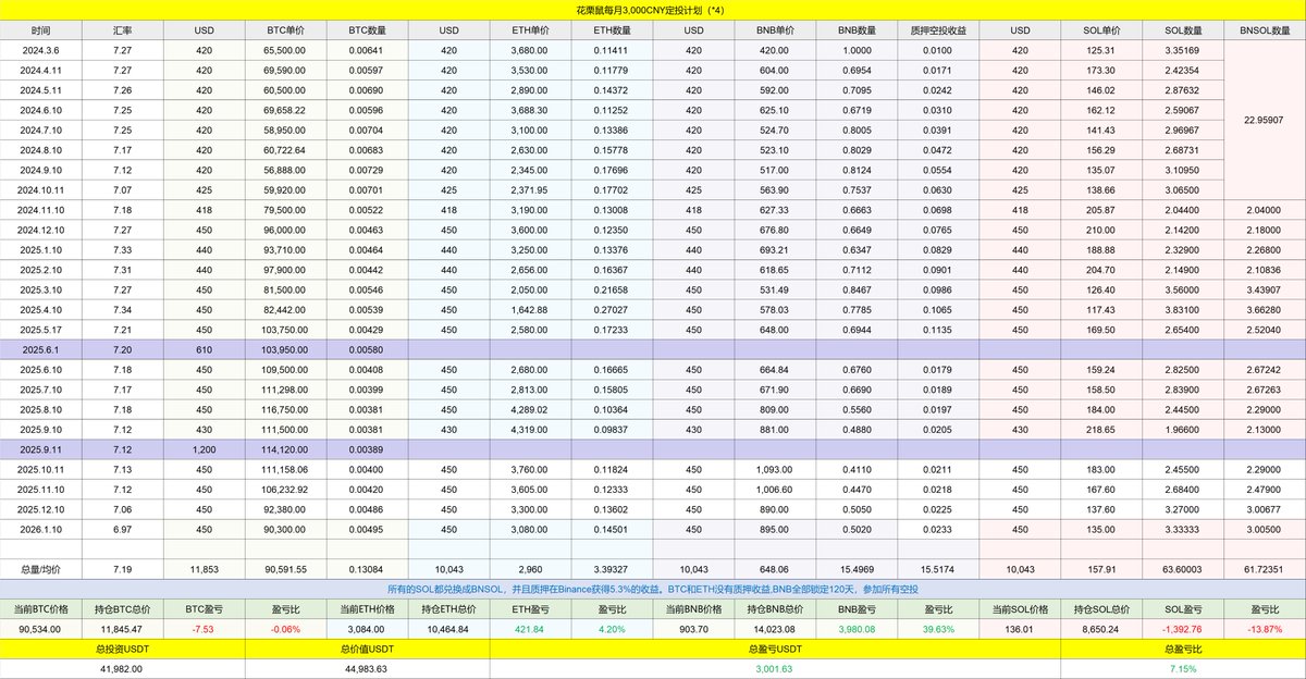 但我现在 BTC 的均价是 90,600 美元左右,而他只有 64,000 美元的均价,🤣🤣🤣我感觉自己受到了 1万点的打击。同时我也想和小伙伴们说,现在确实是挺好的开启 $BTC 定投的时间。